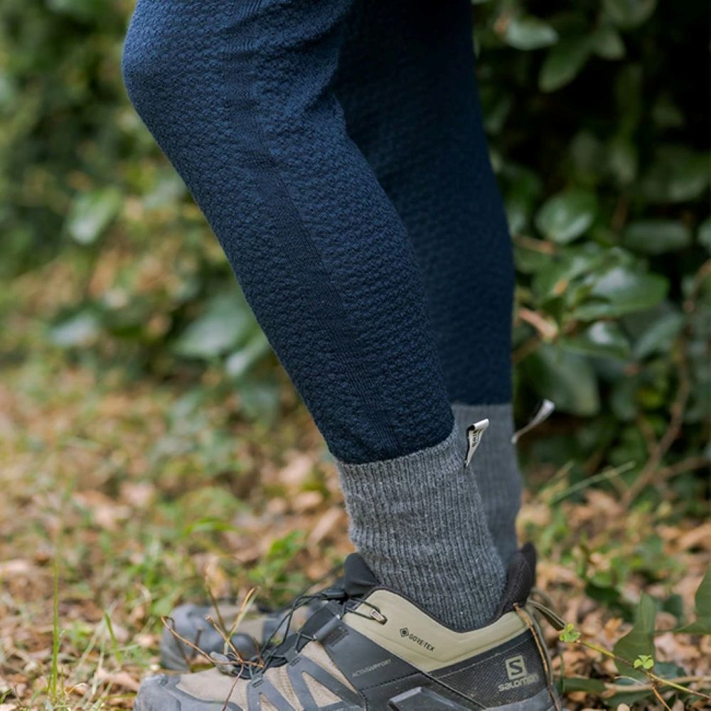 ハイキング、登山を想定し、メリノウール70%、再生ポリエステル30%の混紡で保温性を高めました。