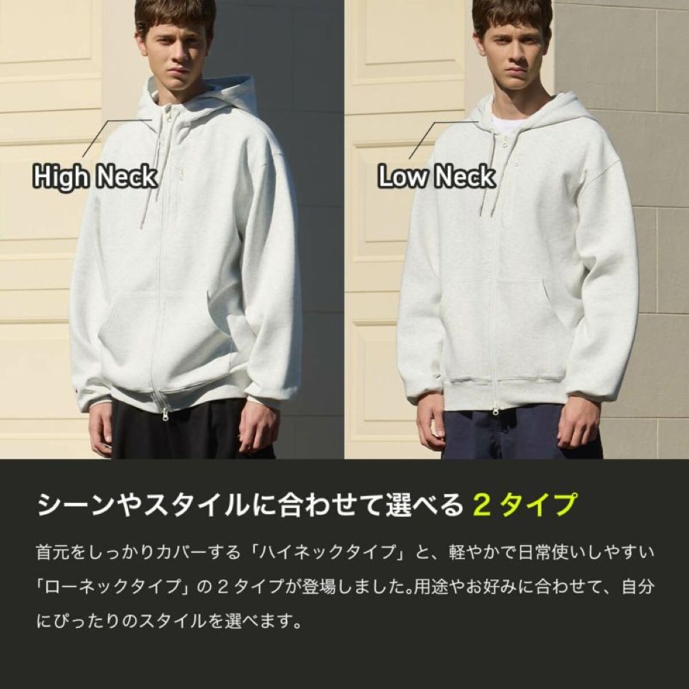 今回のリニューアルで首元をしっかりカバーする「ハイネックタイプ」と、軽やかで日常使いしやすい「ローネックタイプ」の2タイプが登場しました。 用途やお好みに合わせて、自分にぴったりのスタイルを選べます。
