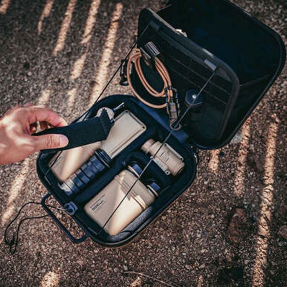 キャンプなどのアウトドアで発生する振動や衝撃からギアを守るハードタイプのギアケース。