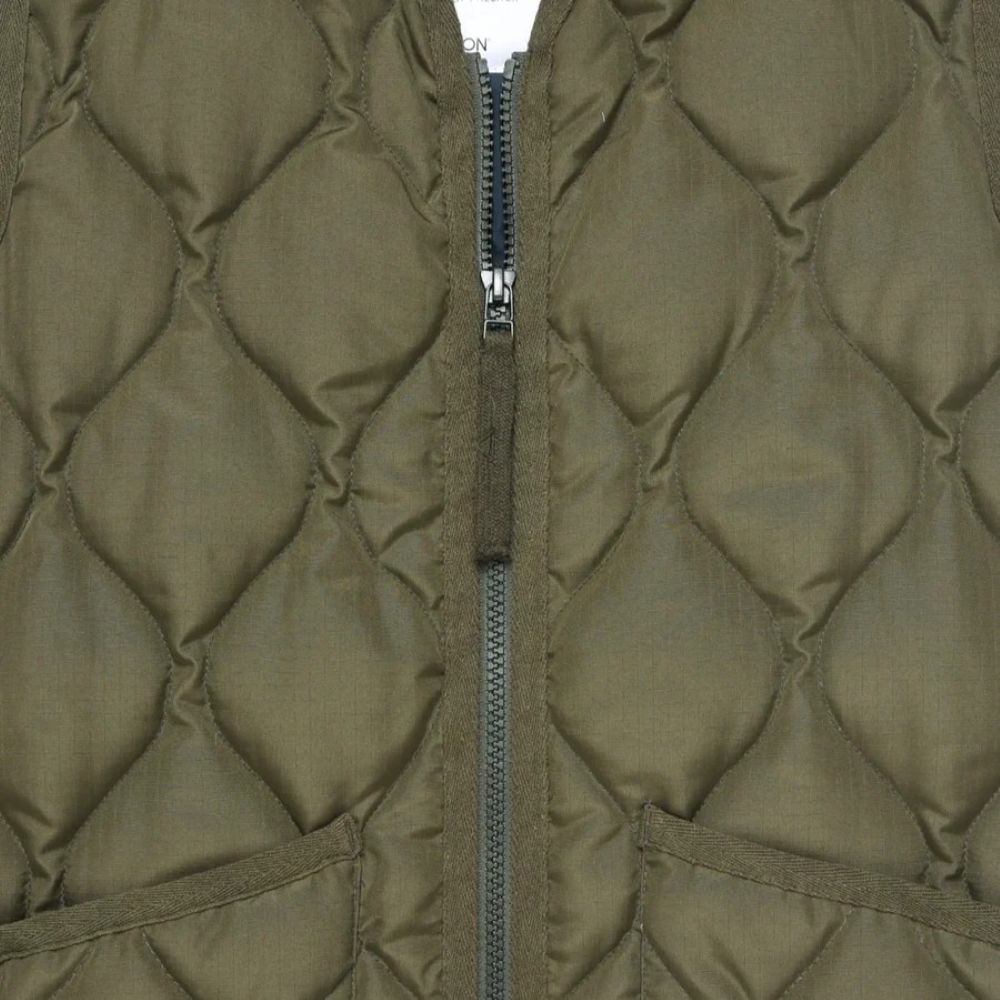 ヘチマキルトのダウンステッチが、クラシカルでミリタリー感を演出。