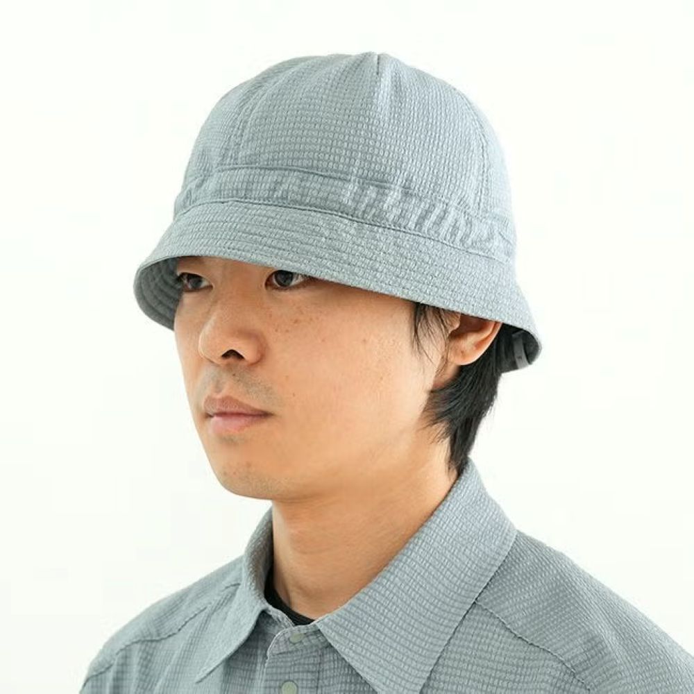 独自のシアサッカー生地を用いた軽量ハットで、蒸し暑い季節や長時間のアクティビティでも快適に過ごせるようデザインされています。