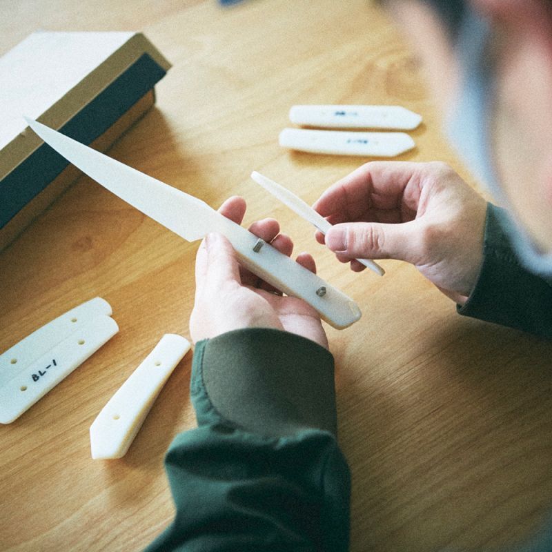 安価な量産品とは違い、地元の伝統工芸の技術を活用することで、 他にはないオリジナル性の高い刃物に仕上げています。 調理用に包丁としての機能性とナイフのビジュアルの良さを追求しています。