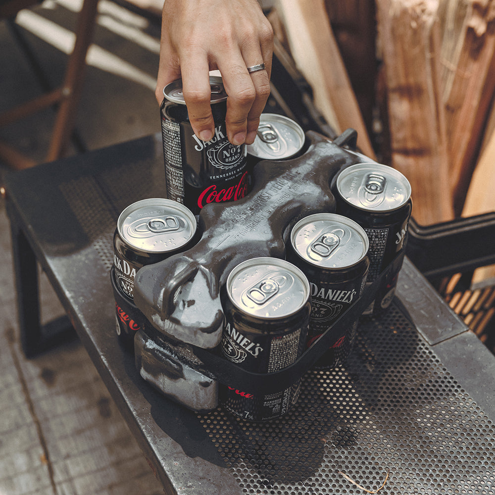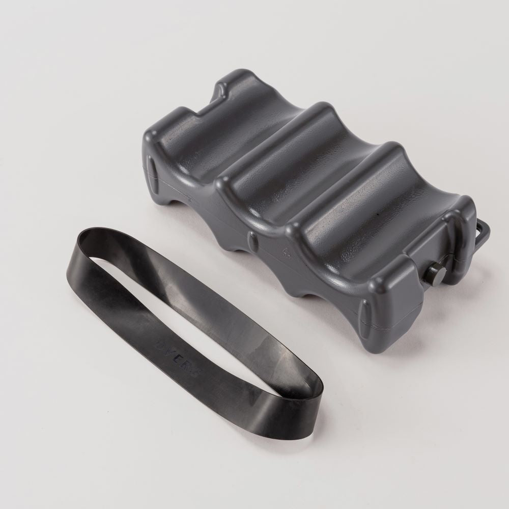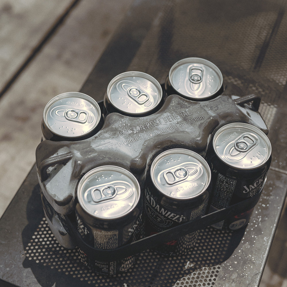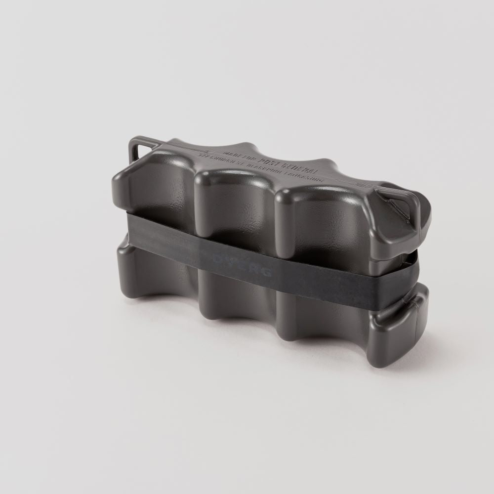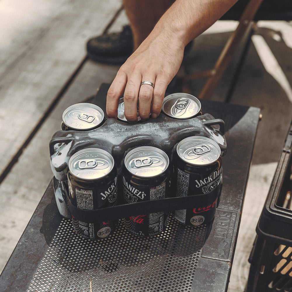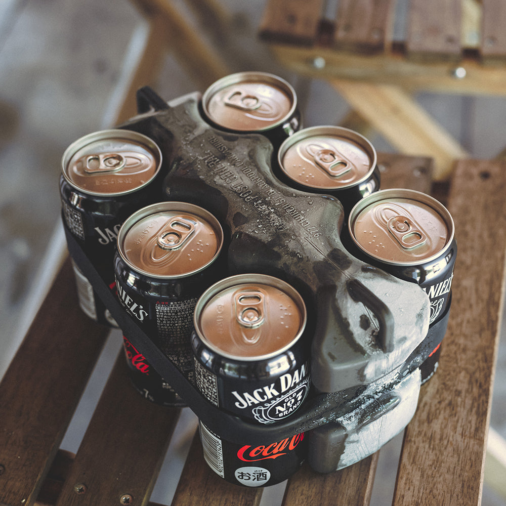 350ml缶や500ml缶、ペットボトルを効率的に保冷する事に特化させた形状で、付属のシリコンバンドで固定する事で、クーラーボックス内でも、常に保冷剤と缶が接地した状態となり保冷効果を高めるデザイン。
