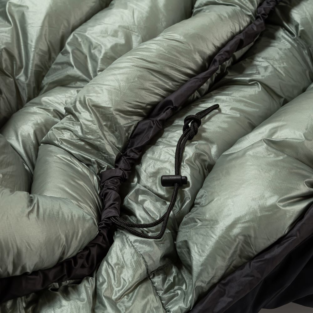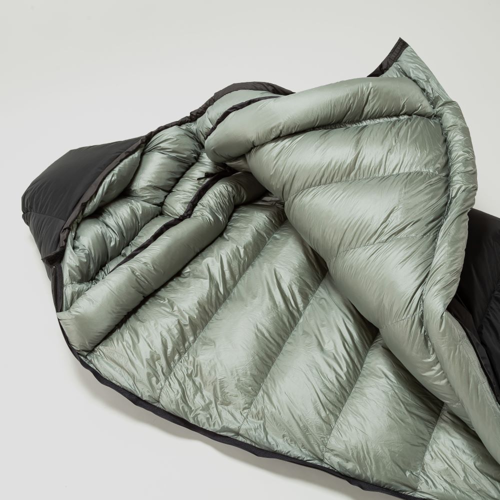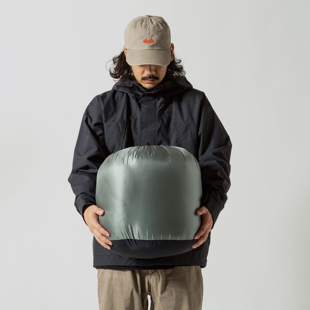 | 素材 | ・表生地上面:AURORA-TEX/15dn Ripstop Nylon ・表生地下面:AURORA-TEX/15dn Ripstop Nylon ・裏生地:15dnナイロンリップ ・羽 毛:リアクト(リサイクルダウン) 700FP |