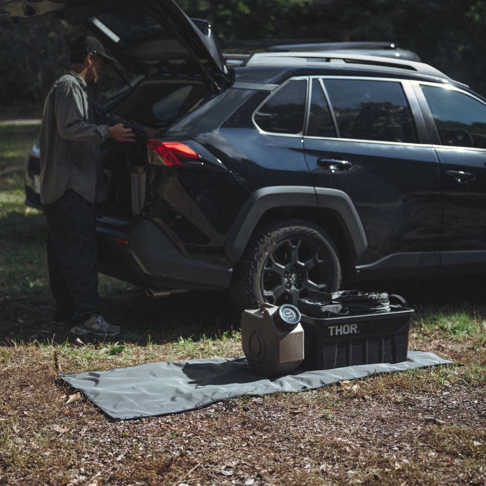 想像以上に使いやすい、横長設計の防水グランドシート。