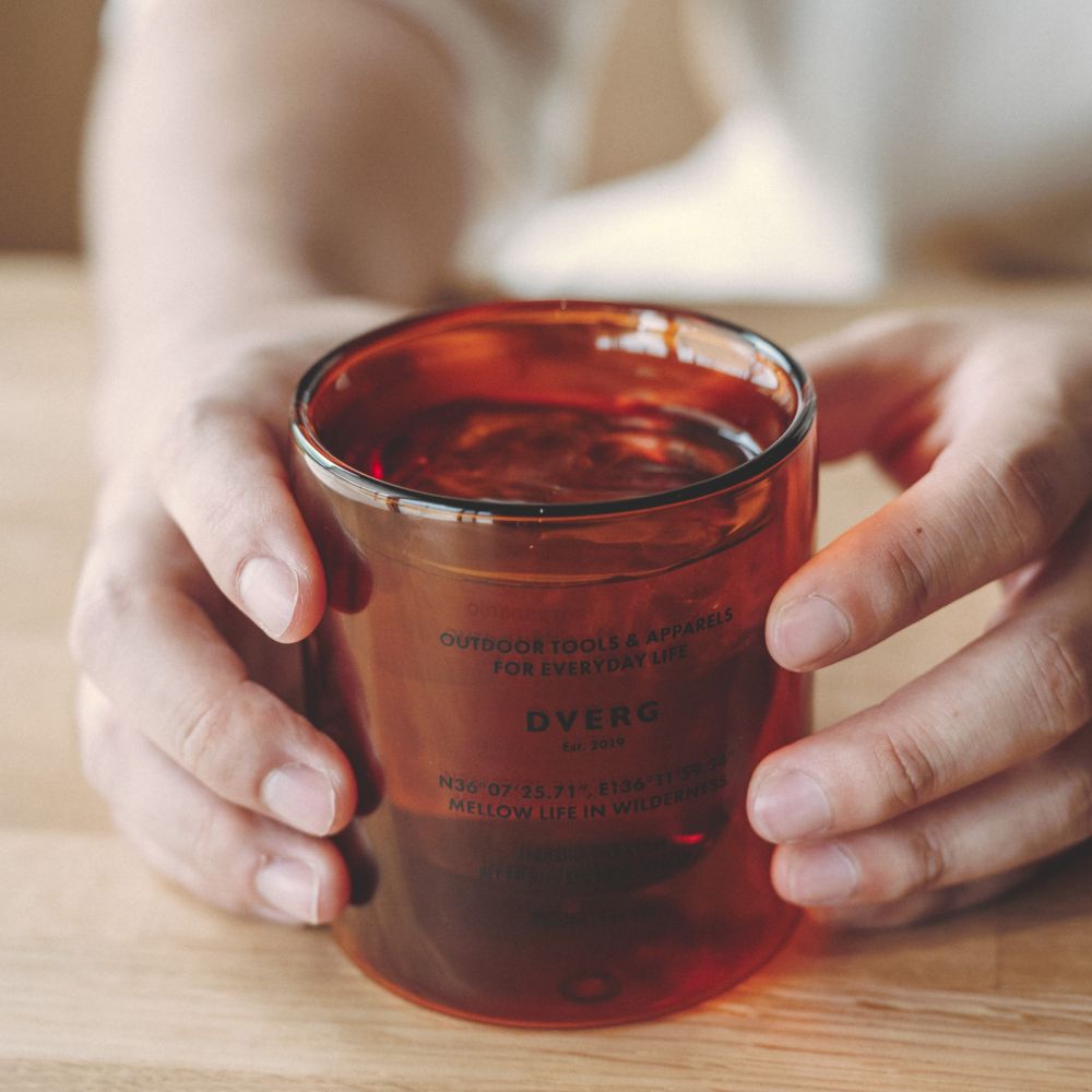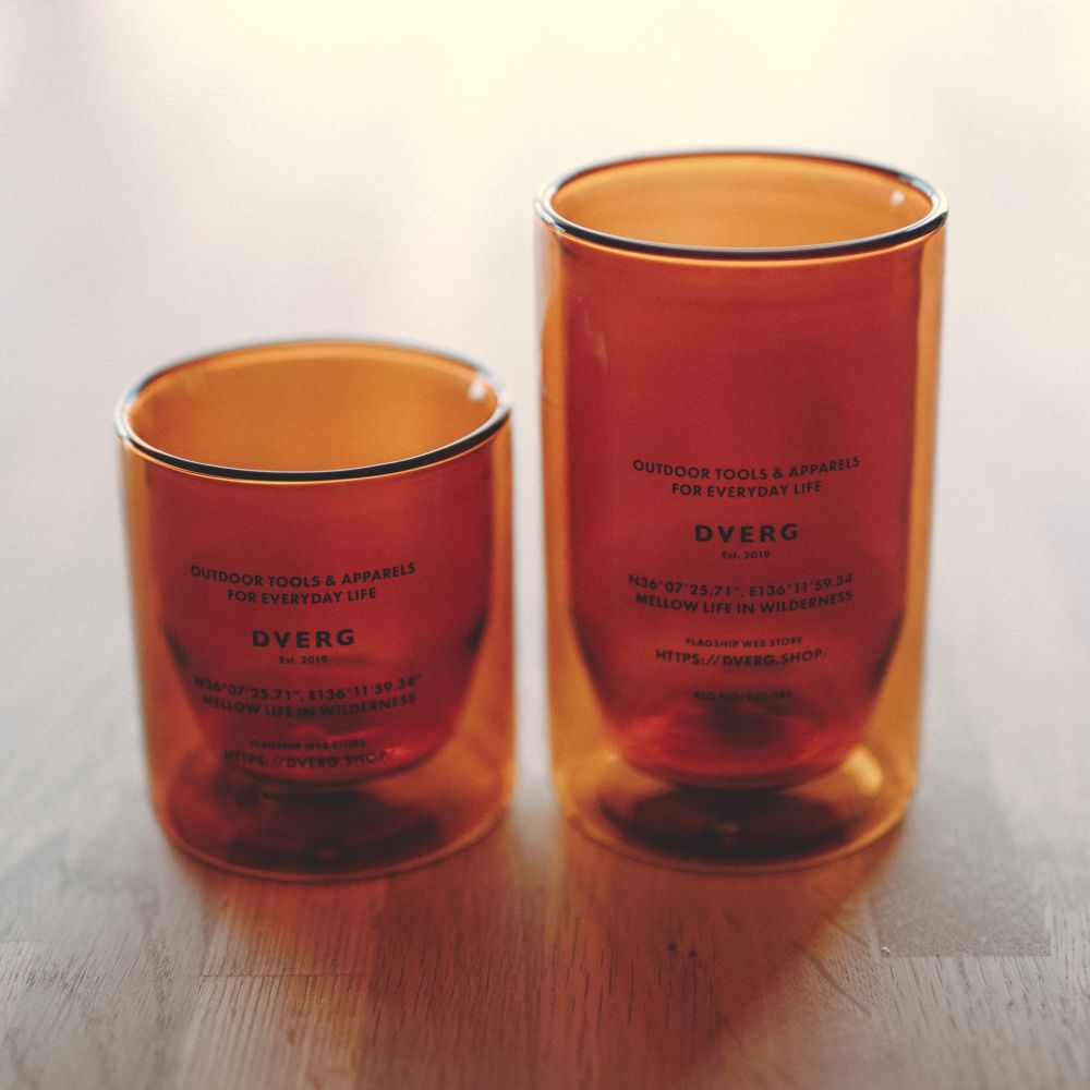 シンプルなデザインと機能性は、普段使いはもちろん、アウトドアシーンにもマッチ。ガラス製のため、キャンプでのご使用には注意が必要ですが、DVERGのラバー製マットと合わせてお使いいただくのがおすすめです。