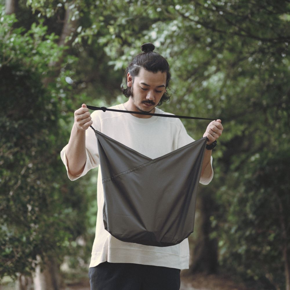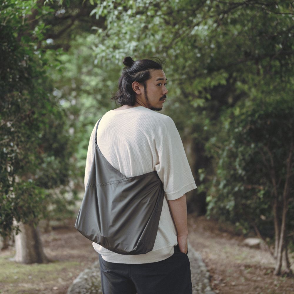 軽さとコンパクトに収納できる手軽さが特徴です。風呂敷や手ぬぐいを縫い合わせ、鞄の代わりとして使われた「あずま袋」から着想を得たワンショルダーバッグのMサイズです。