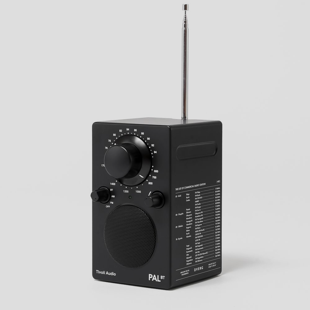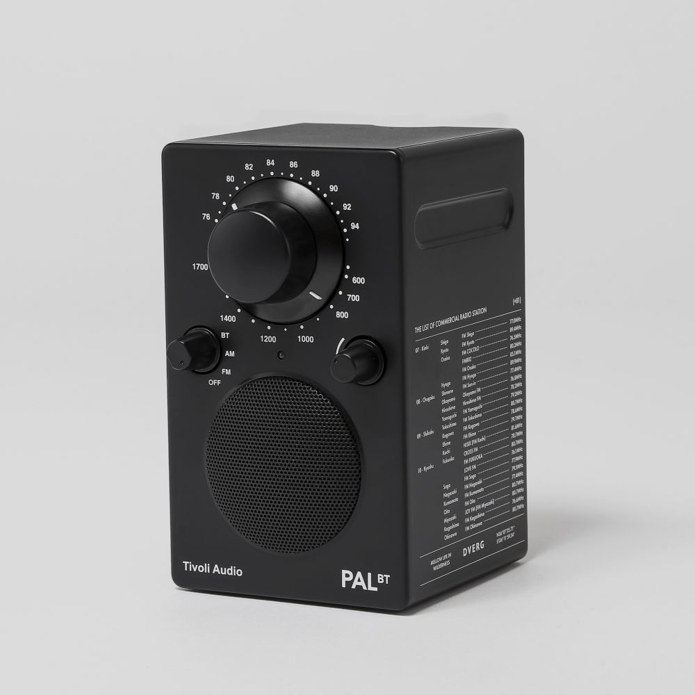 PAL BTは、ビンテージなアナログデザインに最新技術を搭載したポータブルラジオ&Bluetoothスピーカーです。両サイドに放送局や地域別の周波数を印字した別注限定モデルが登場しました。