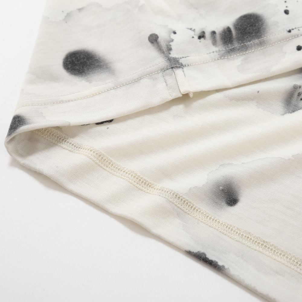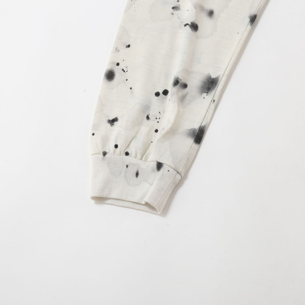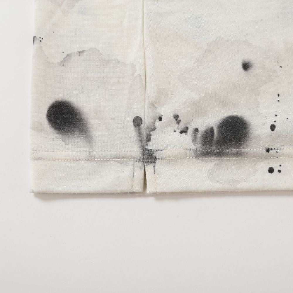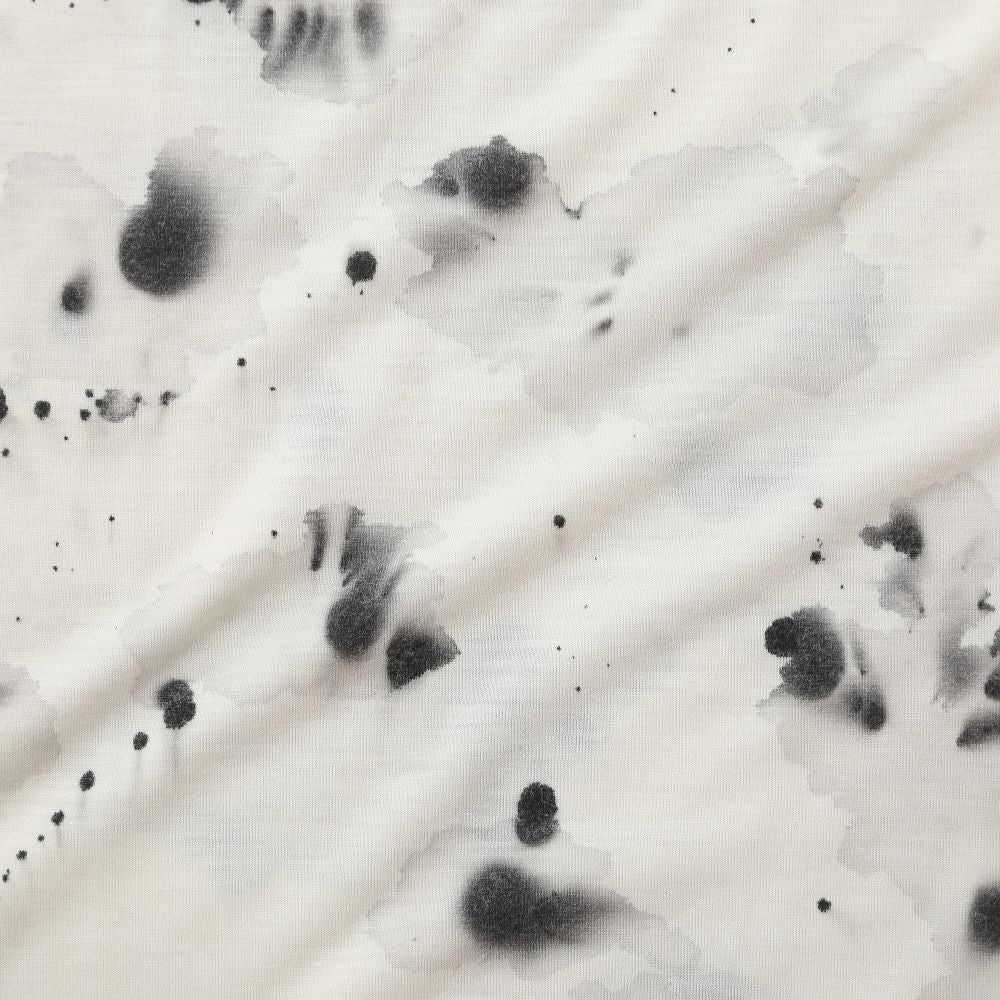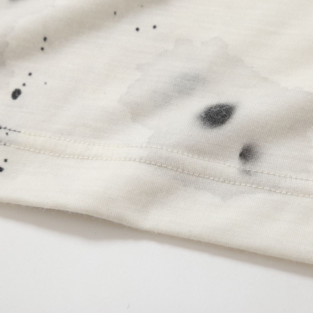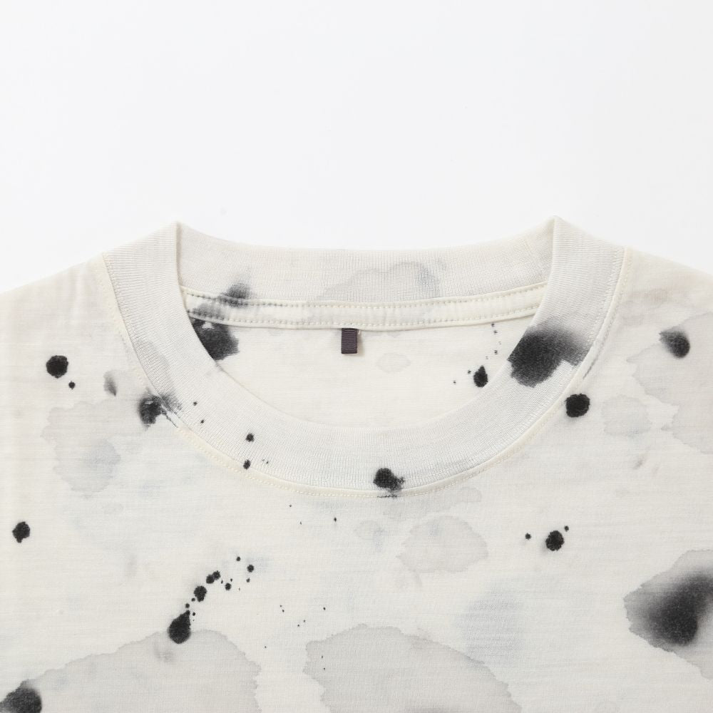 墨をスポット状に落とすことで、一枚ごとに異なる風合いを生み出し、機能性だけでなくファッション性も兼ね備えた仕上がりになっています。