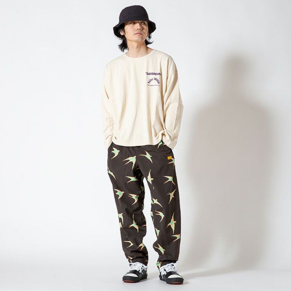 太くもなく細くもない程よいルーズ感のあるシルエット、イージーでラフに穿けるパンツです。
