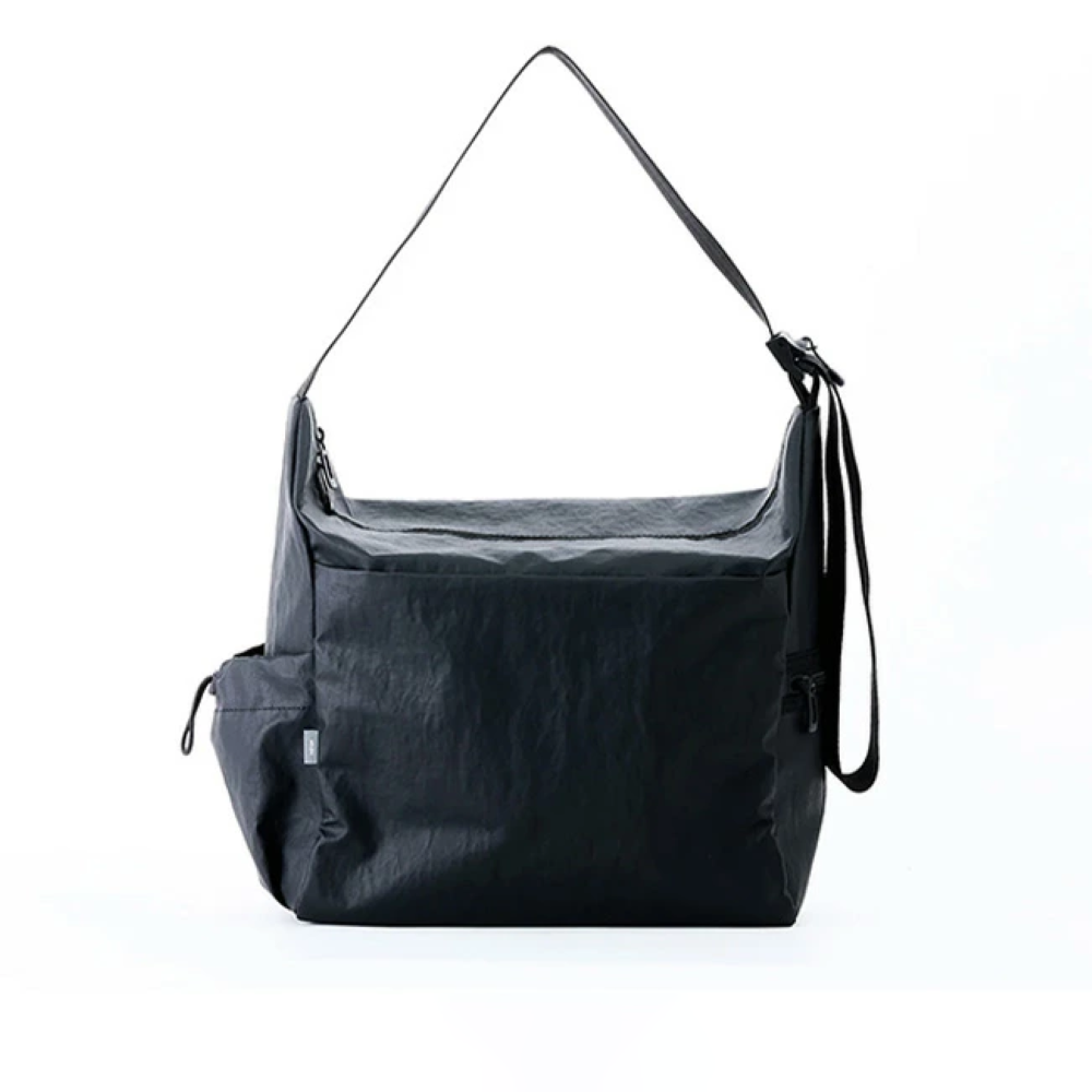 軽量でありながら引張強度と引裂強度に優れたナイロン素材を使用しているため、強度と耐久性があり、通常の平織生地と異なるツイル織りを採用しているため、適度な伸縮性も備えています。