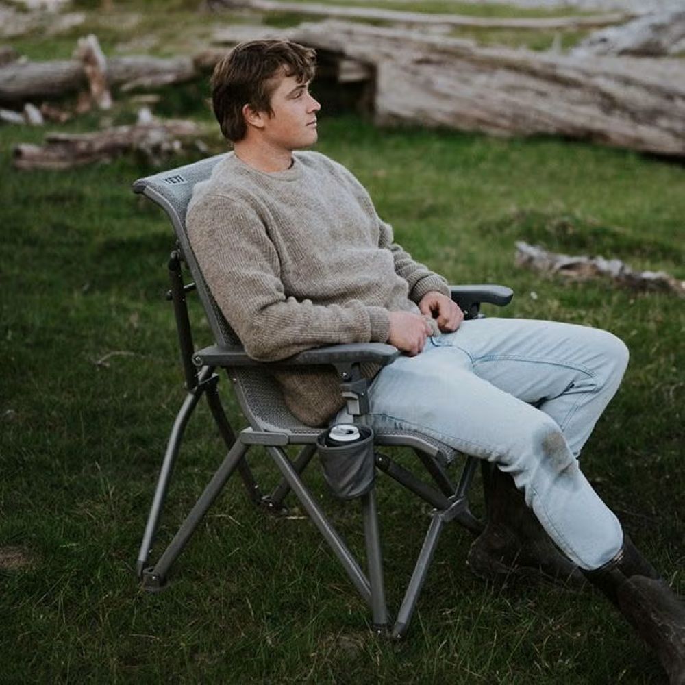 耐久性と快適性を兼ね備えた折りたたみ式のキャンプチェア。