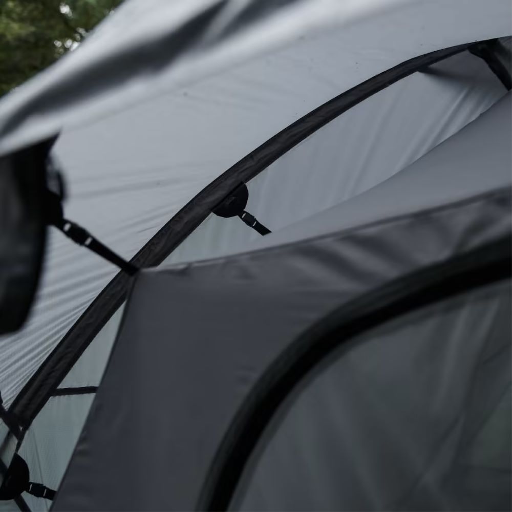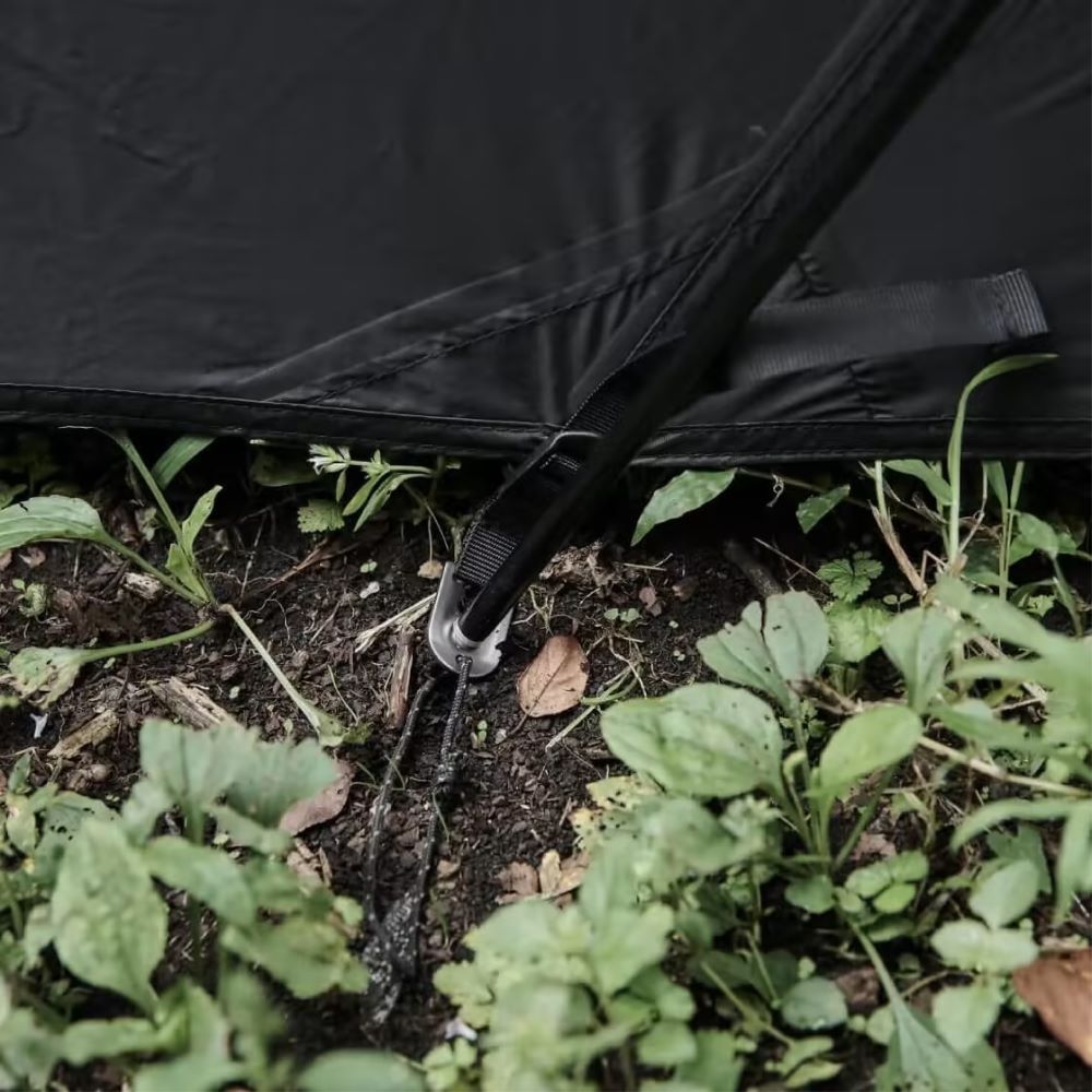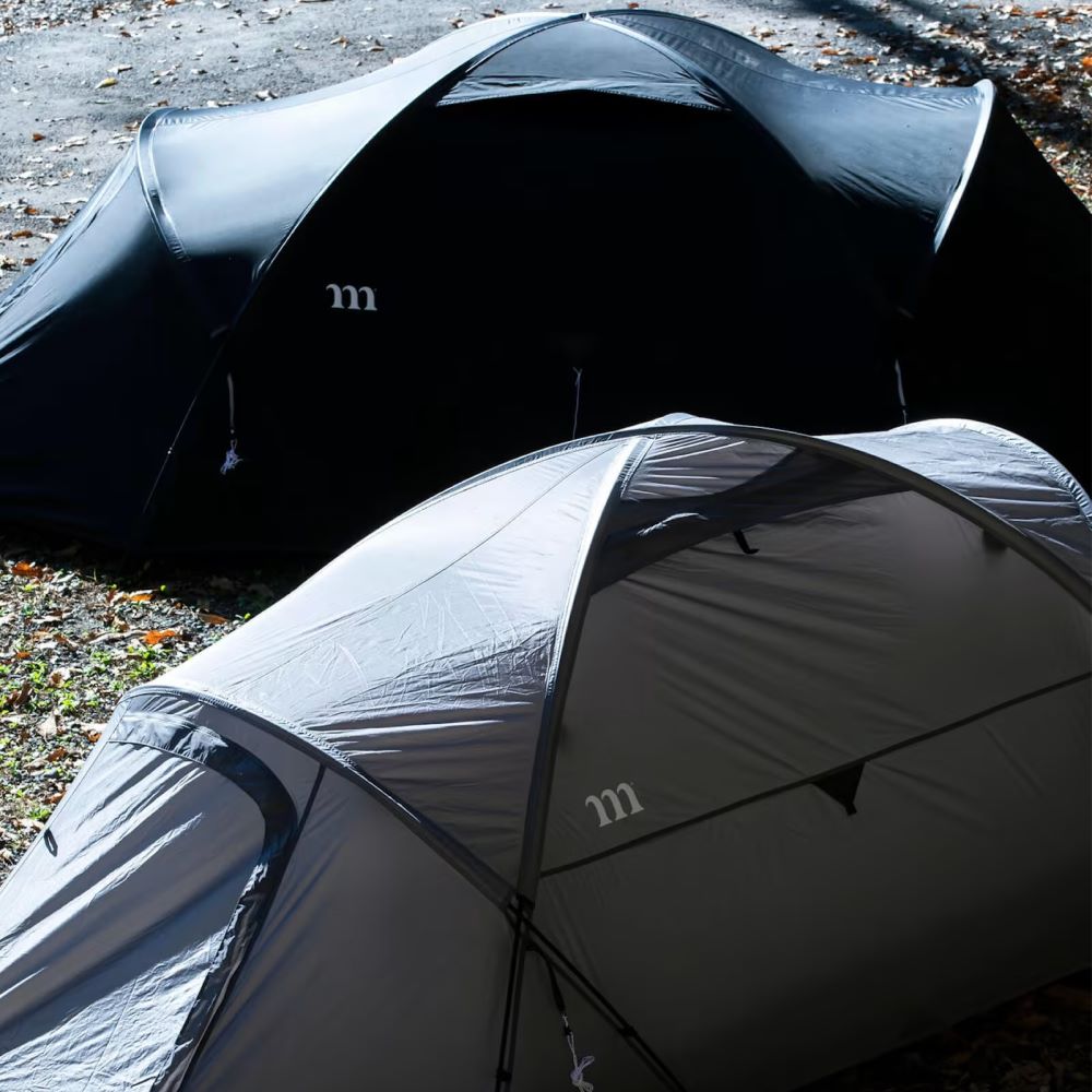 | 材料 | フライシート, インナーテントフロア - 40Dリップストップナイロン、撥水コーティング & 耐水PUコーティング / 耐水圧1500mm インナーテントフロア - 68Dポリエステルタフタ、撥水コーティング & 耐水PUコーティング / 耐水圧3,000mm フレームポール - muraco Flex Light / A7001アルミ合金 Black Anodizing |