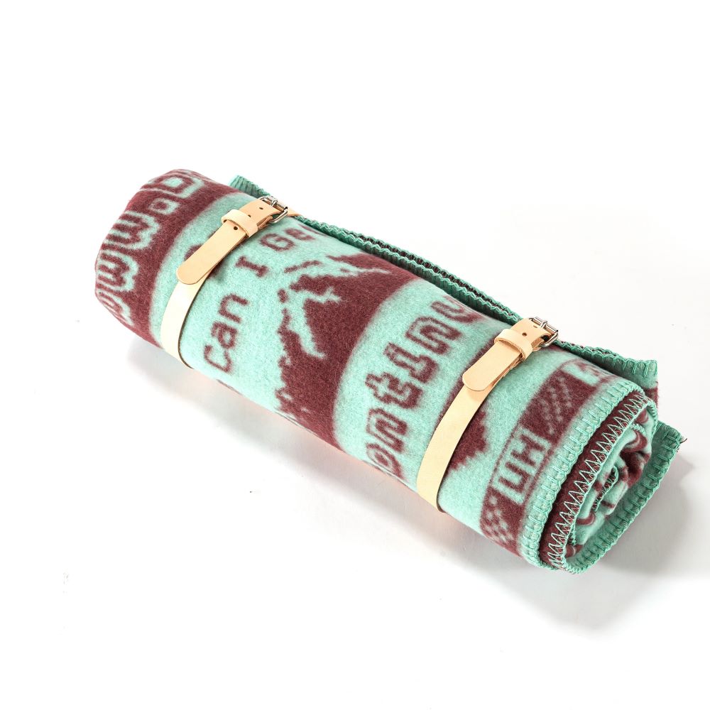 | 材料 | 毛布本体:WOOL 50%、POLYESTER 50% ストラップ:牛革 |