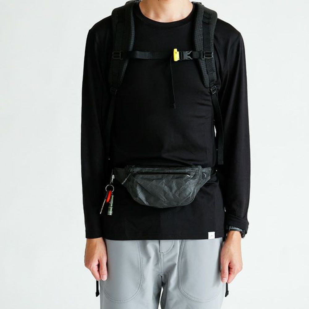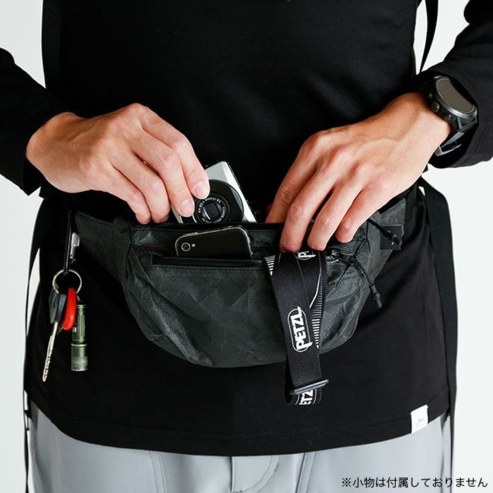 サイズ感も絶妙で、ウエスト、ヒップ、肩掛けとして使えるほか、薄さを活かしてバックパックの外ポケットに収納することも可能です。