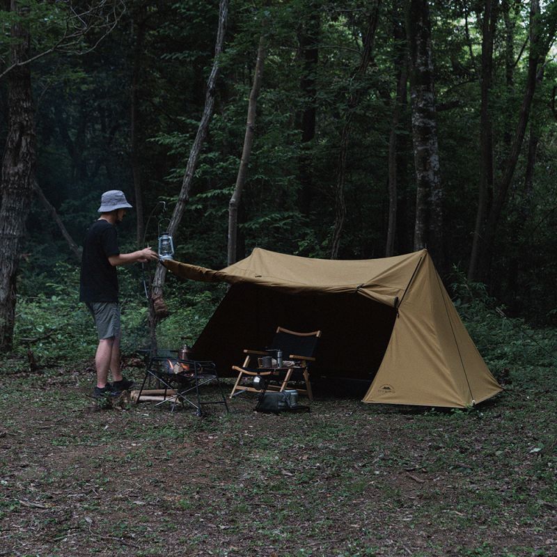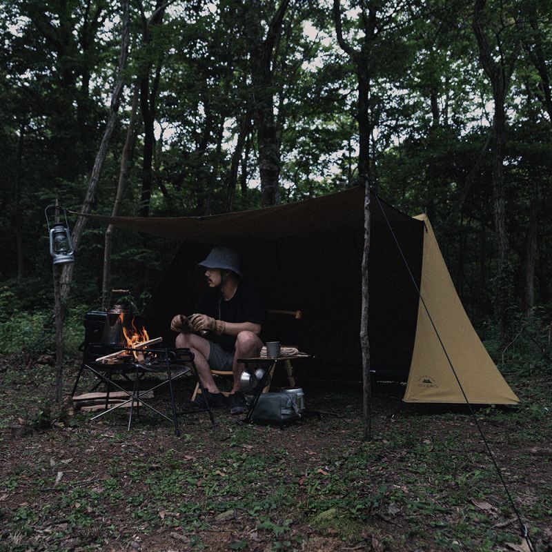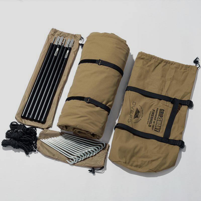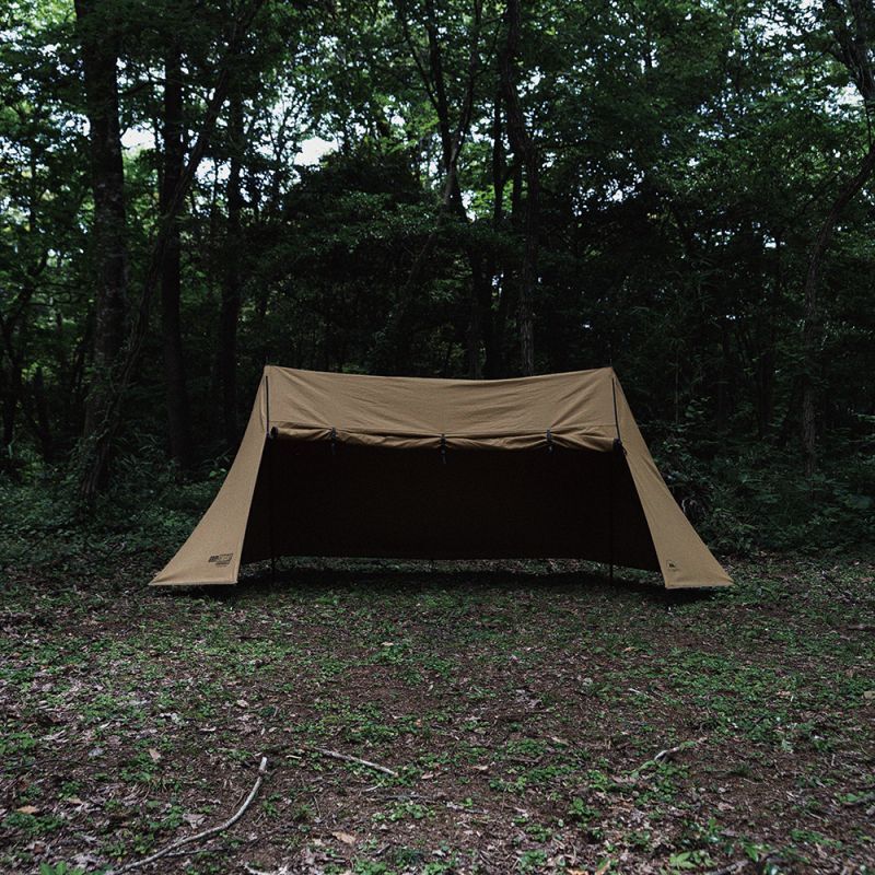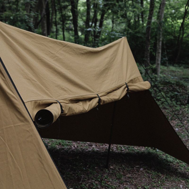 面料是GRIP SWANY開發的阻燃防水材料“B RAZE SHIELD ”。不用擔心搭帳篷強行隔開篝火,即使突然下雨也讓人安心。這在露營中似乎是顯而易見的功能,但像這樣的帳篷卻少之又少。