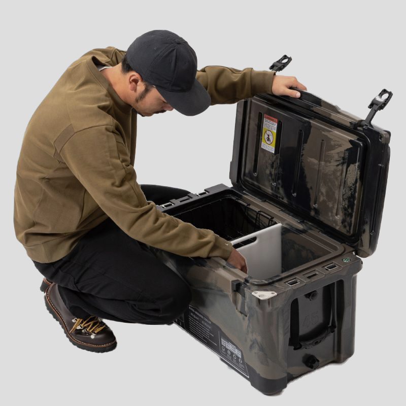 充滿了這種關注的冷藏箱已經完成。定制大地色迷彩圖案。我希望你能感受到融入自然的渴望,而不是為了戰爭。