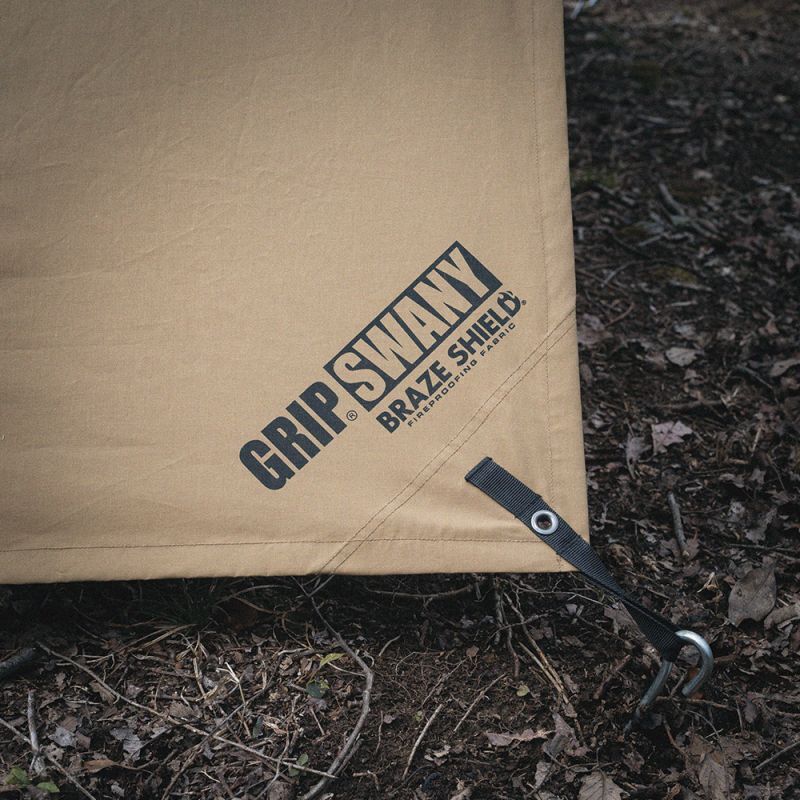 使用GRIPSWANY開發的自熄性優異的阻燃布料BRAZE SHIELD的阻燃篷布。