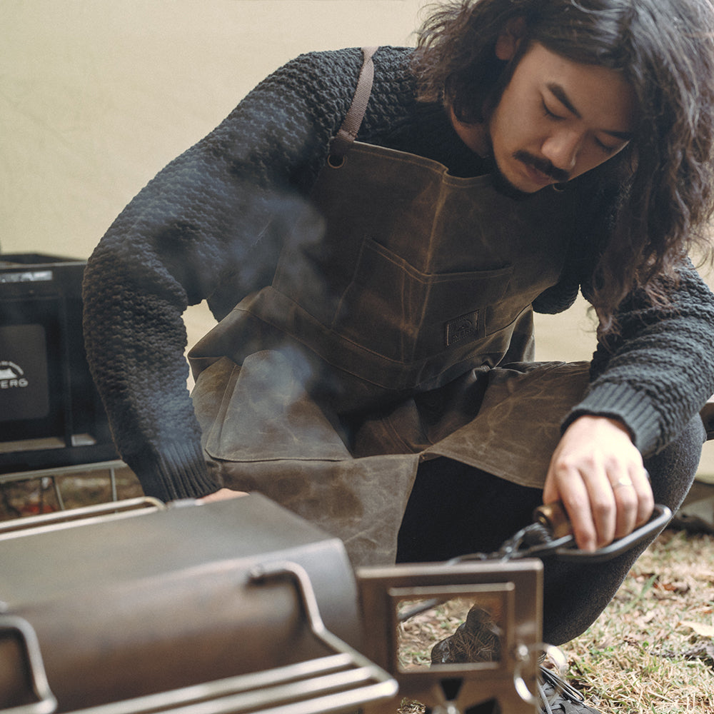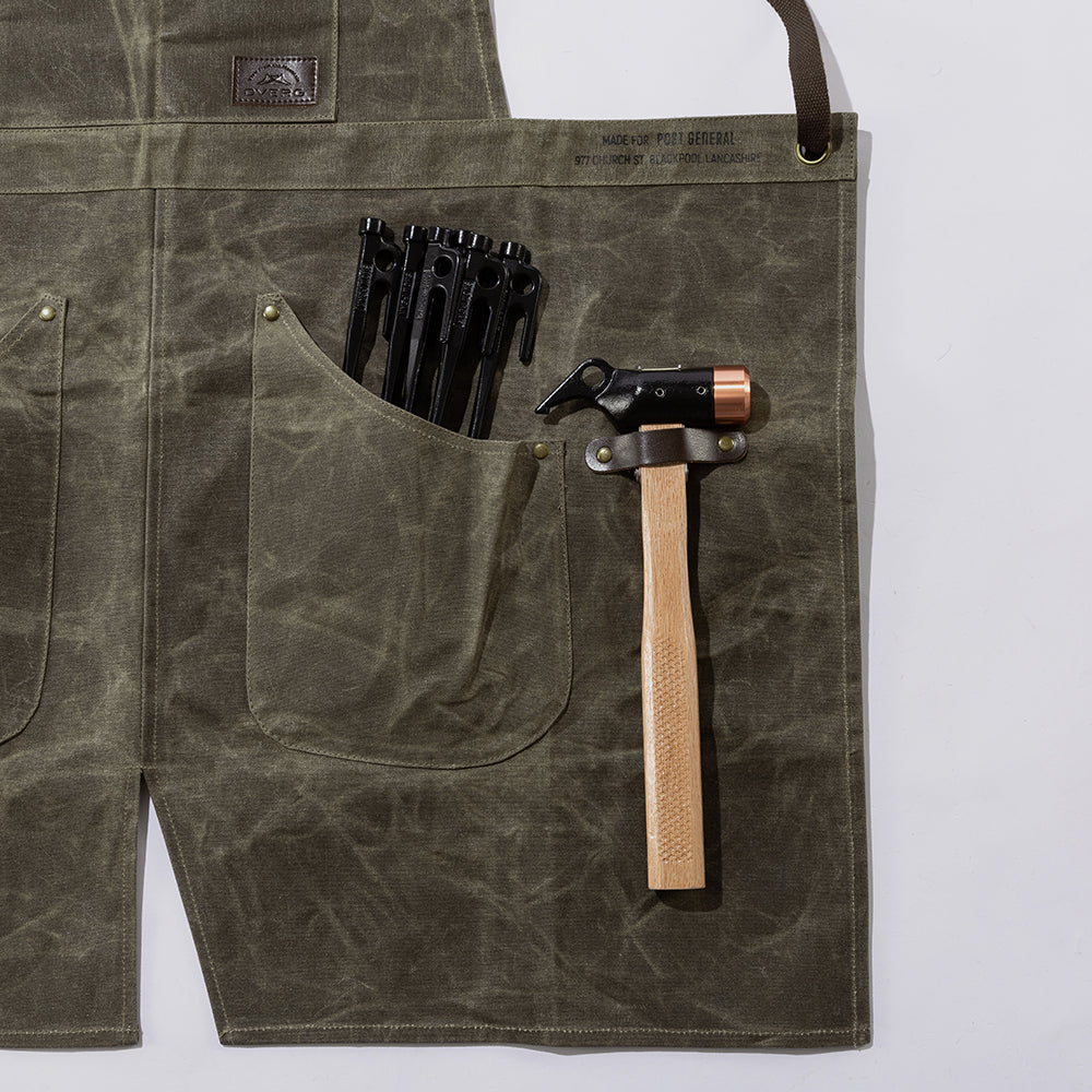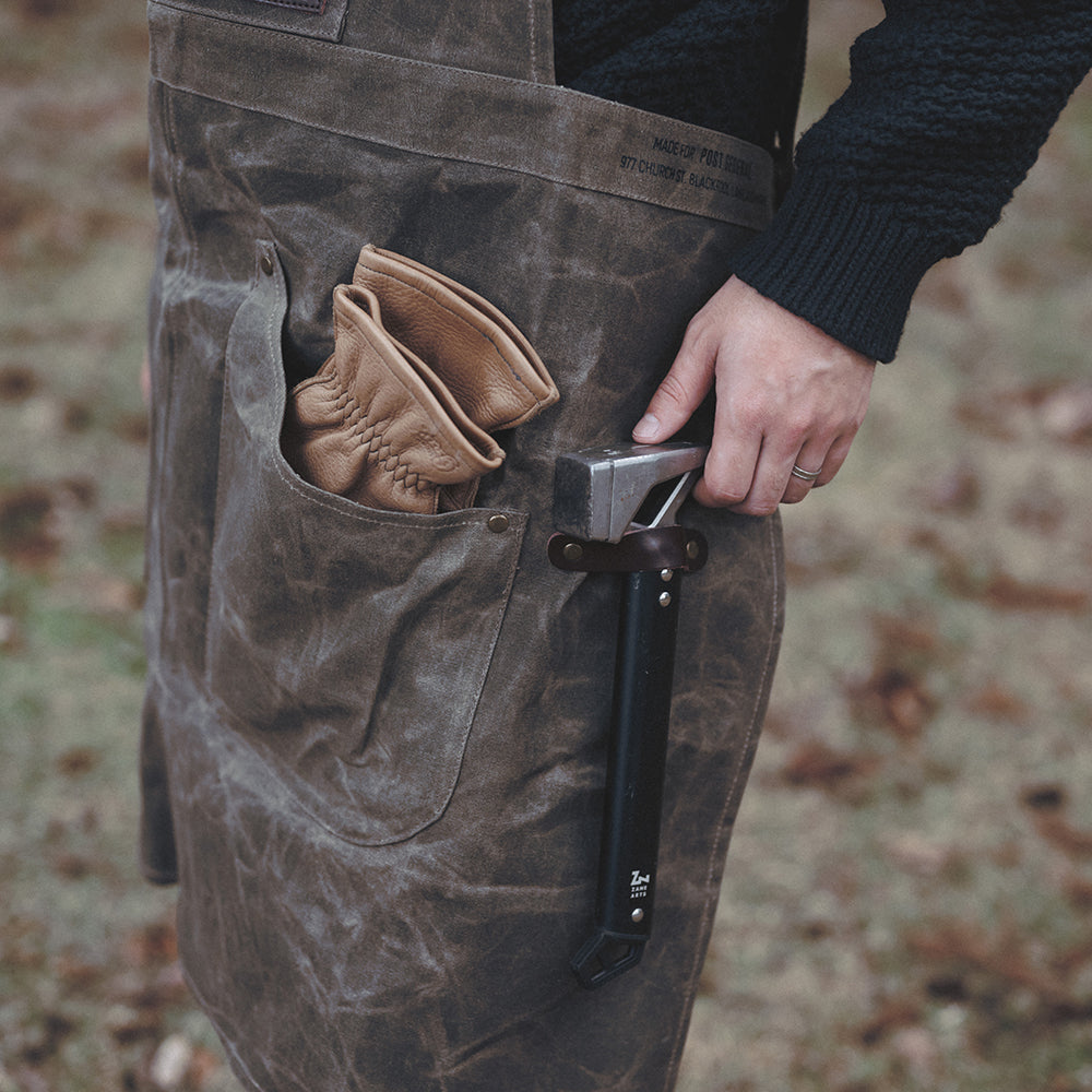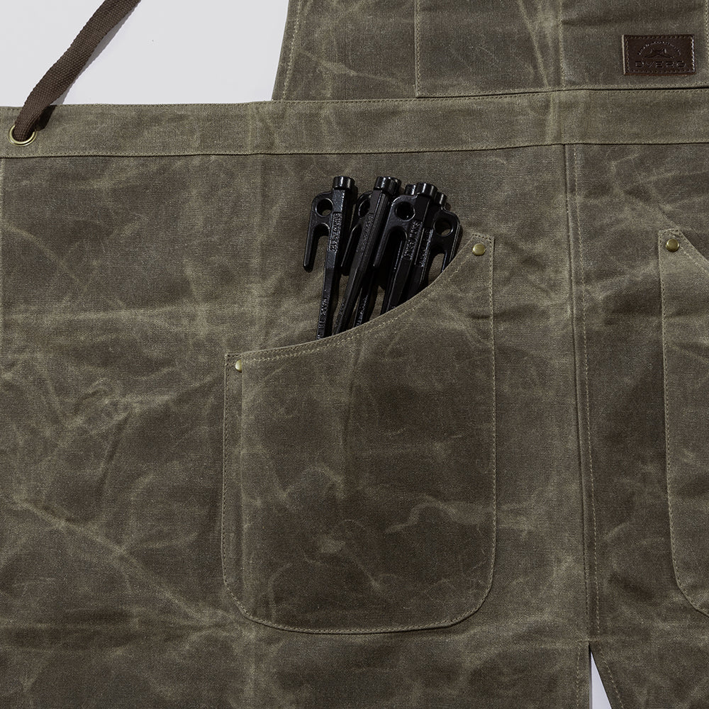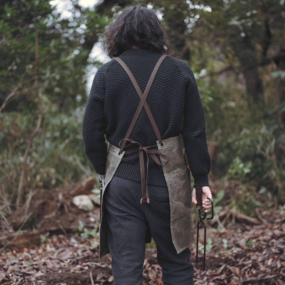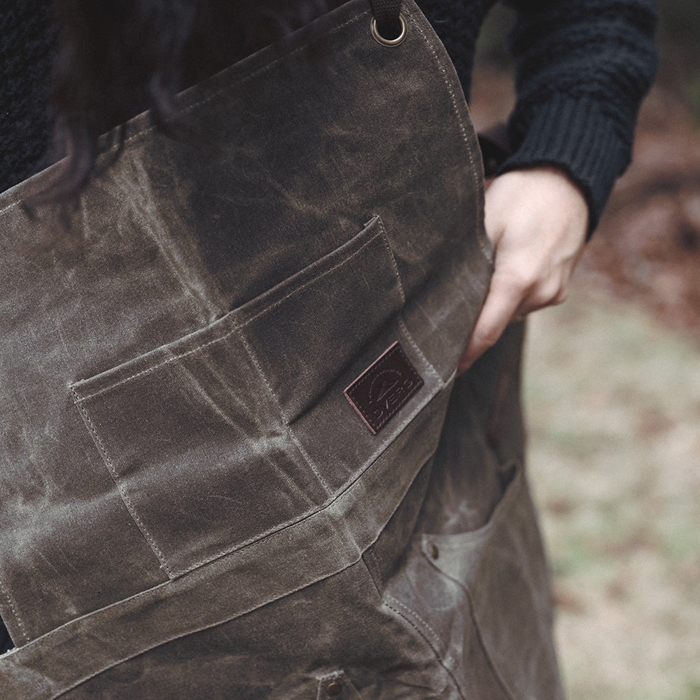耐用的帆布面料經過打蠟以提高防水性,使其成為戶外易於使用的圍裙。越用越柔軟,可以享受材質質感的老化效果。