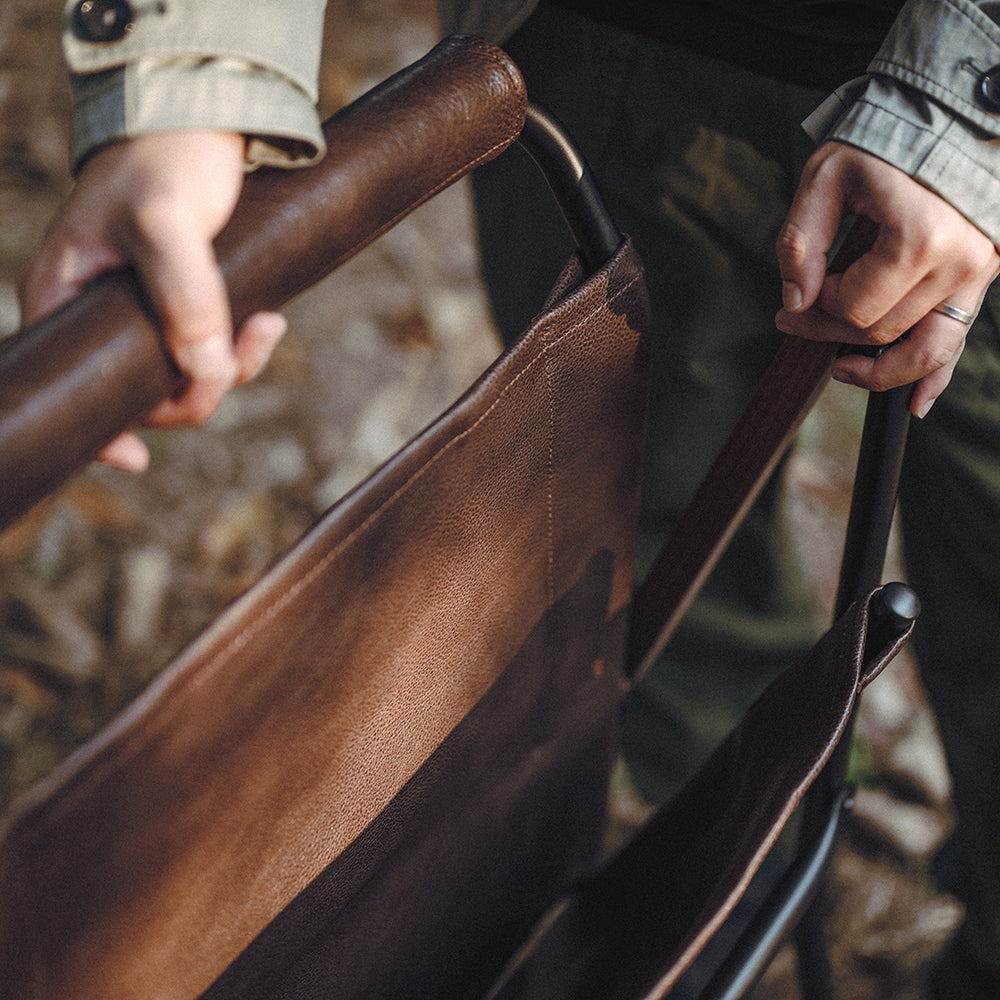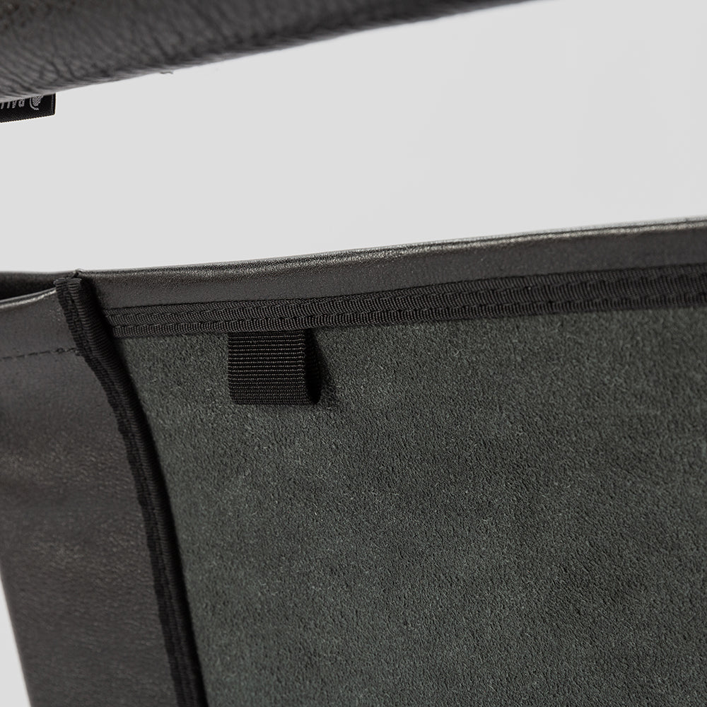 座椅襯裡採用聚酯帆布加固,以提高耐用性。沒有使用背面的襯裡,故意保留了皮革地板的紋理。