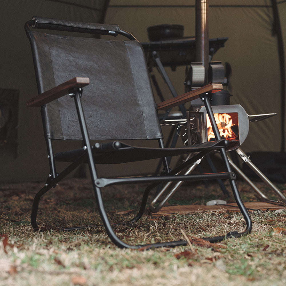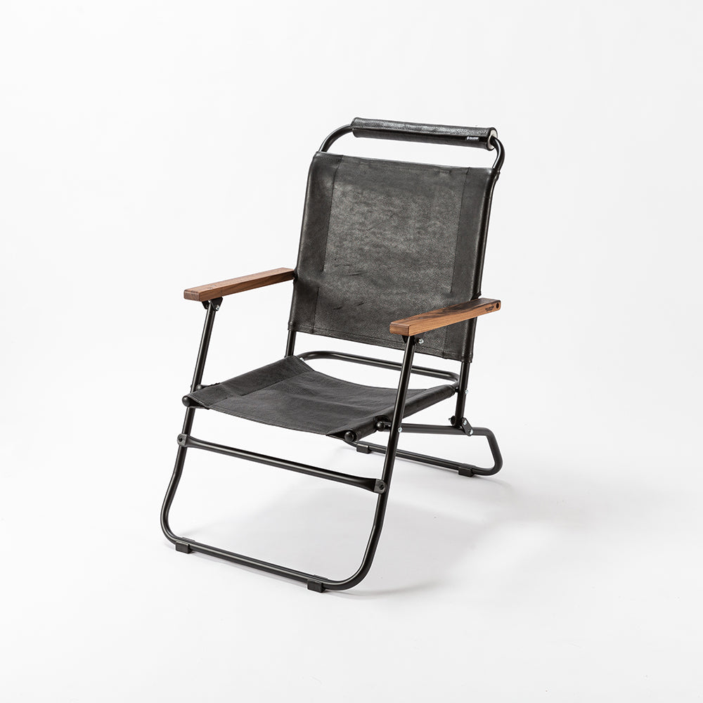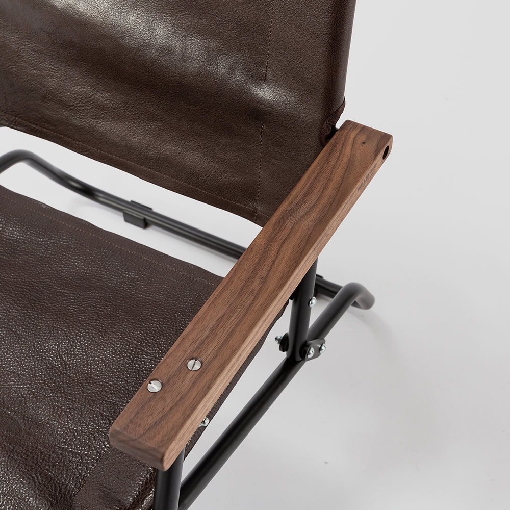扶手採用胡桃木飾面,框架採用黑色飾面,與真皮的沉穩氛圍融為一體。主體為矮型版本,座高降低到與 Kermit 椅子幾乎相同的高度。