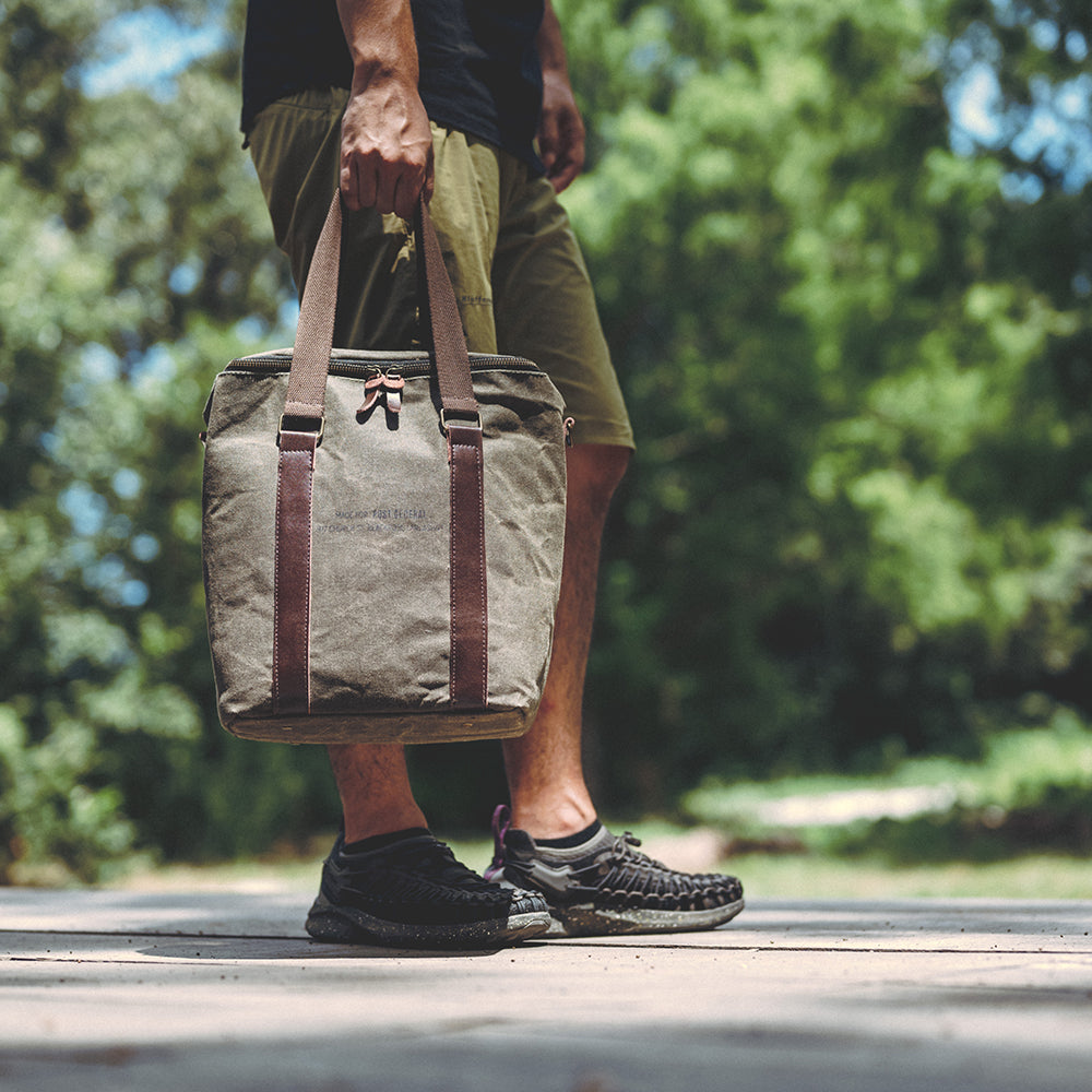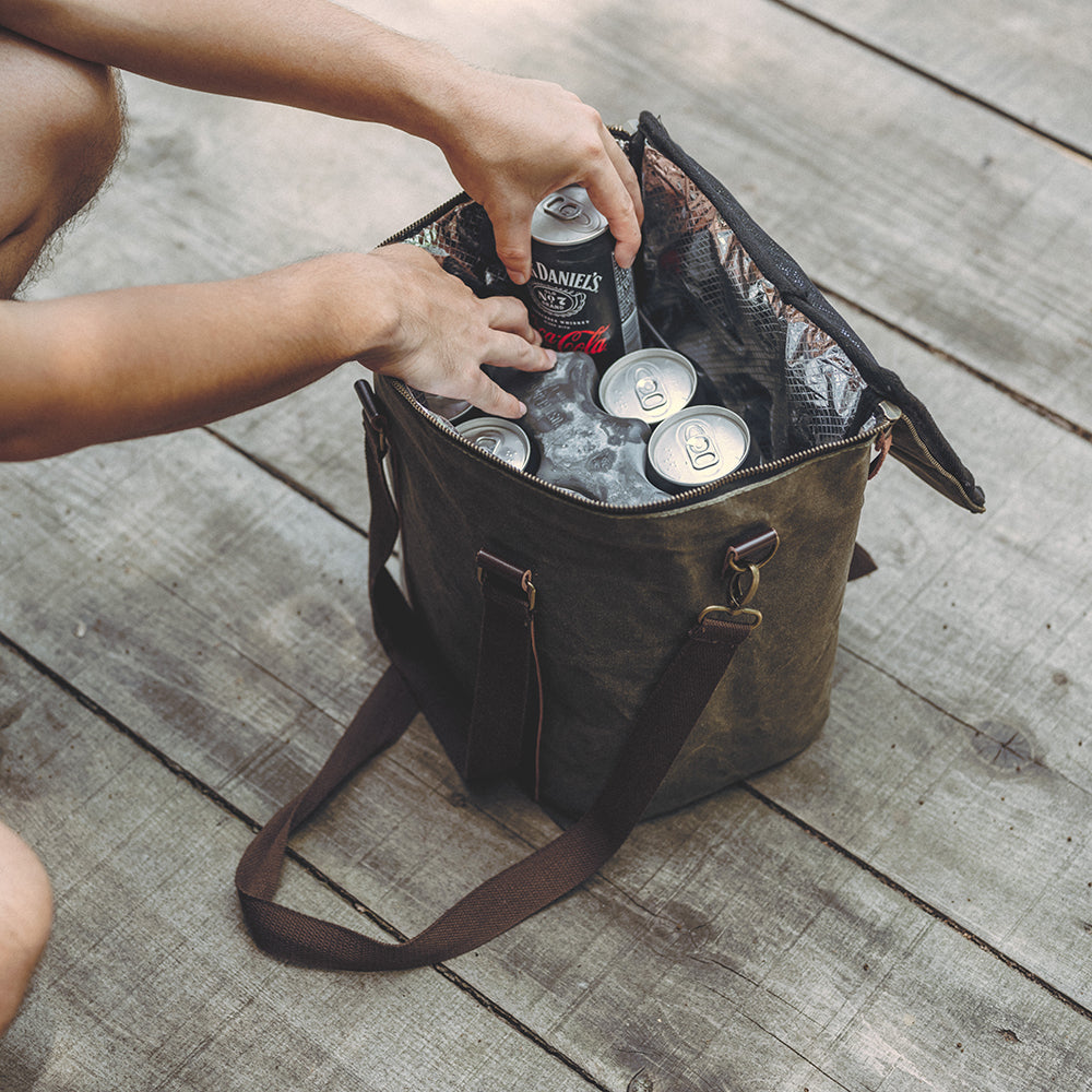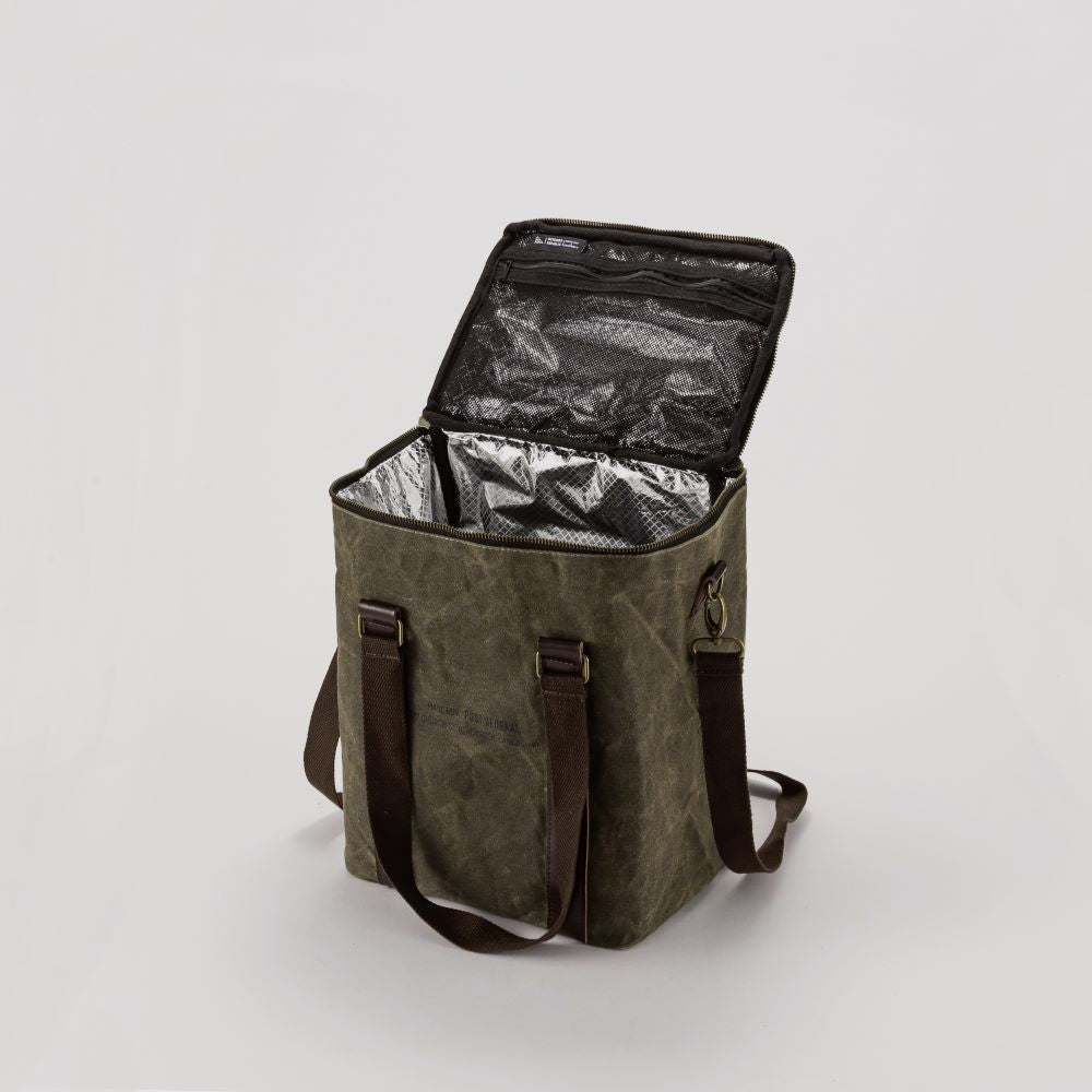 ビール大瓶、1.5Lペットボトルが入る高さで、ピクニック、キャンプシーンだけでなく日々の買い物にも最適な保冷バッグ。ショルダーベルトでの肩掛け、手持ちでの持ち運びが可能です。