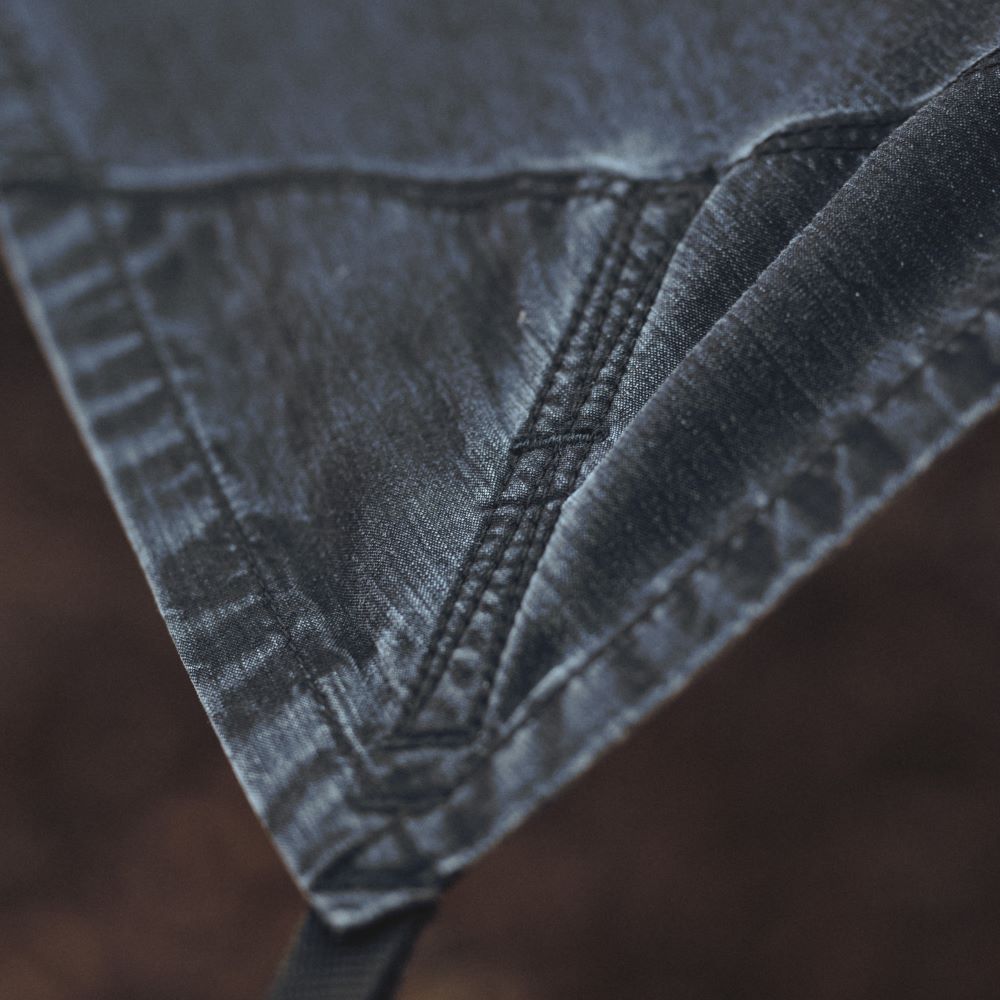 従来のインディゴブルーから姿を変え、ドベルグ限定カラーのブラックデニム。難燃&撥水加工が施されたデニム生地で、火の粉に強く突然の雨にも心強い作りとなっています。国産デニム産地の岡山県井原市で、縫製から染めまで職人が一点一点手作り。