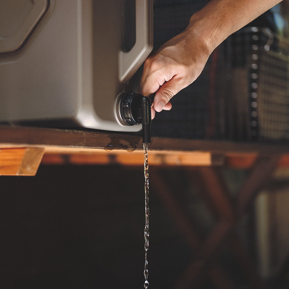 蓋は大小の2種類。 広口は手が入る大きさで、タンク内の洗浄が可能で、いつでも衛生的に保てます。狭口は付属のウォーターコック(蛇口)を取り付け、手洗い用の蛇口、ウォータージャグなど幅広い用途で使用が可能です。