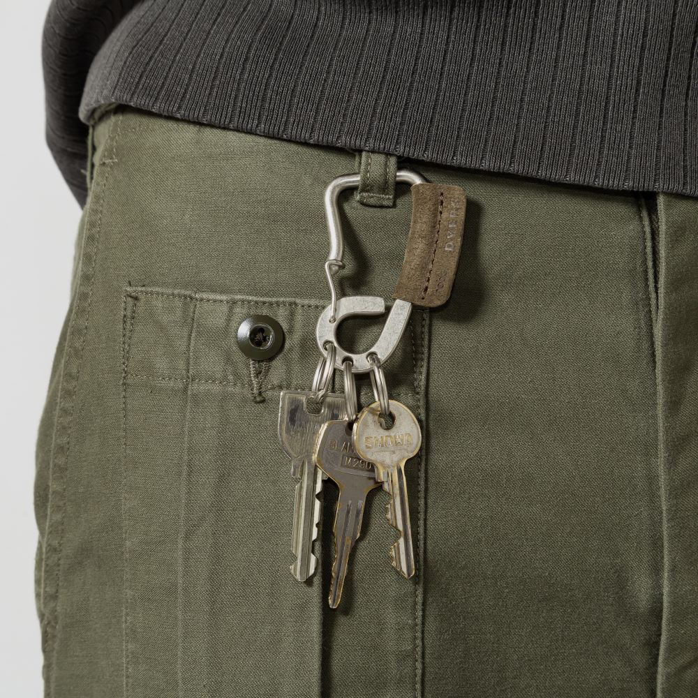 2重リングを3つ配し、鍵の整頓がしやすい仕様。 バッグのハンドルやパンツのベルトループなどに取り付けて楽しめます。