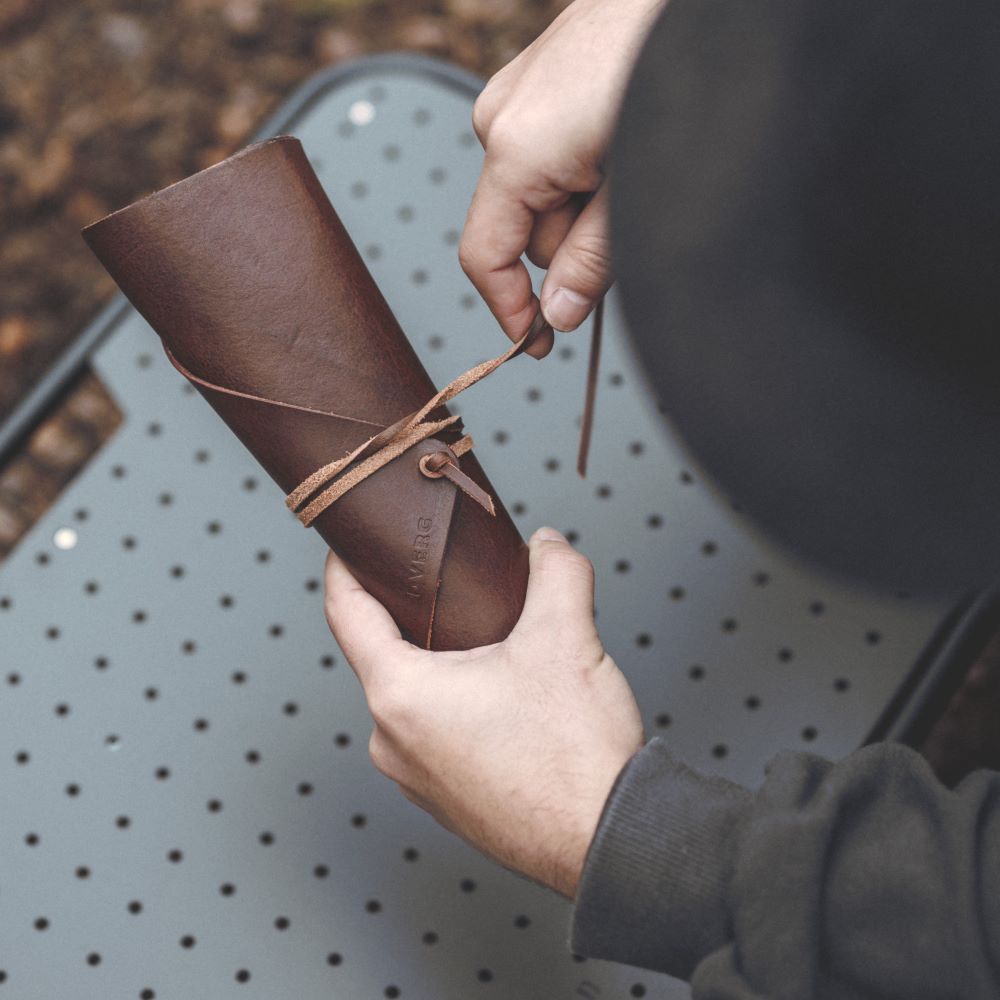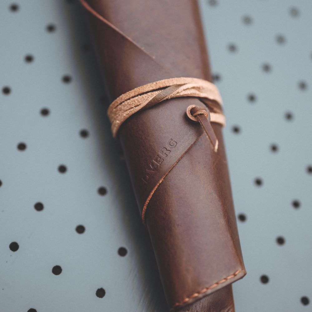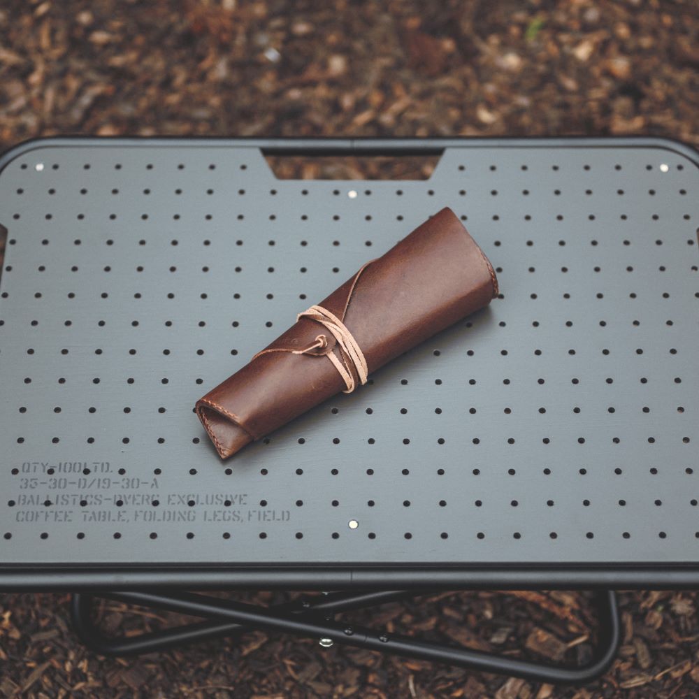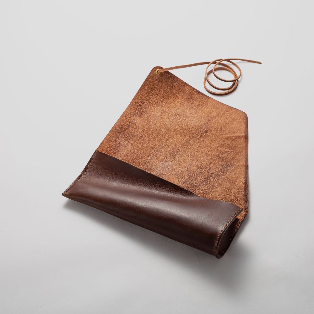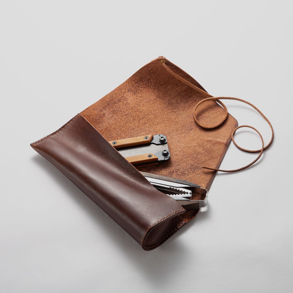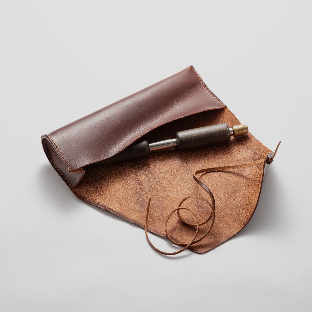 クサビが収納できるレザー製ロールケース。