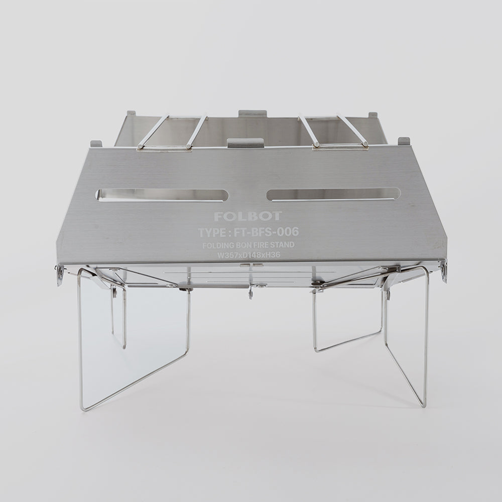 FOLBOTの一味違った焚き火台「BON FIRE STAND」面倒な組み立てが不要な焚き火台。