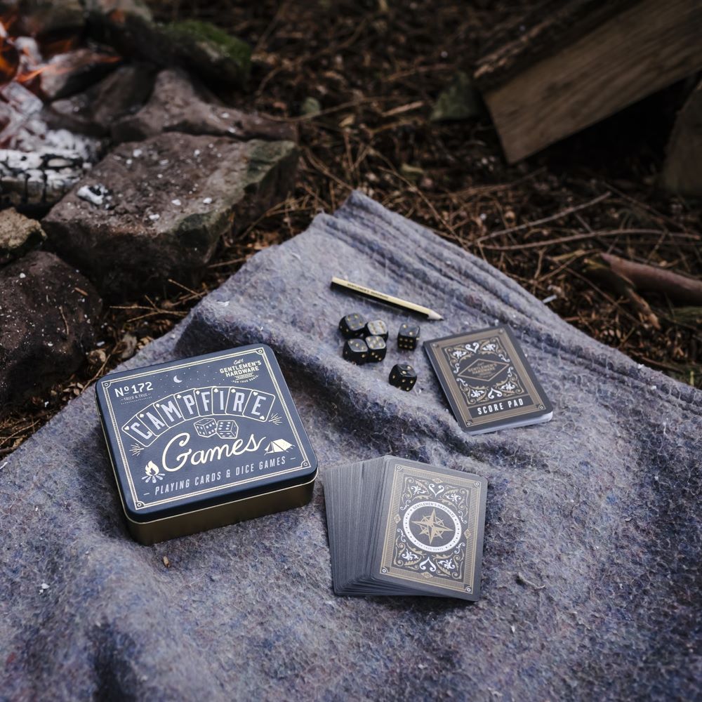 鉛筆とサイコロゲームの説明入りのキャンプファイヤーゲーム。