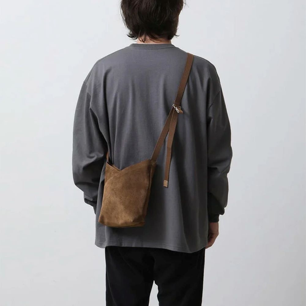 独特なフォルムと斜めに配されたポケットが特徴的で、様々なコンパクトな日用品の収納に最適です。