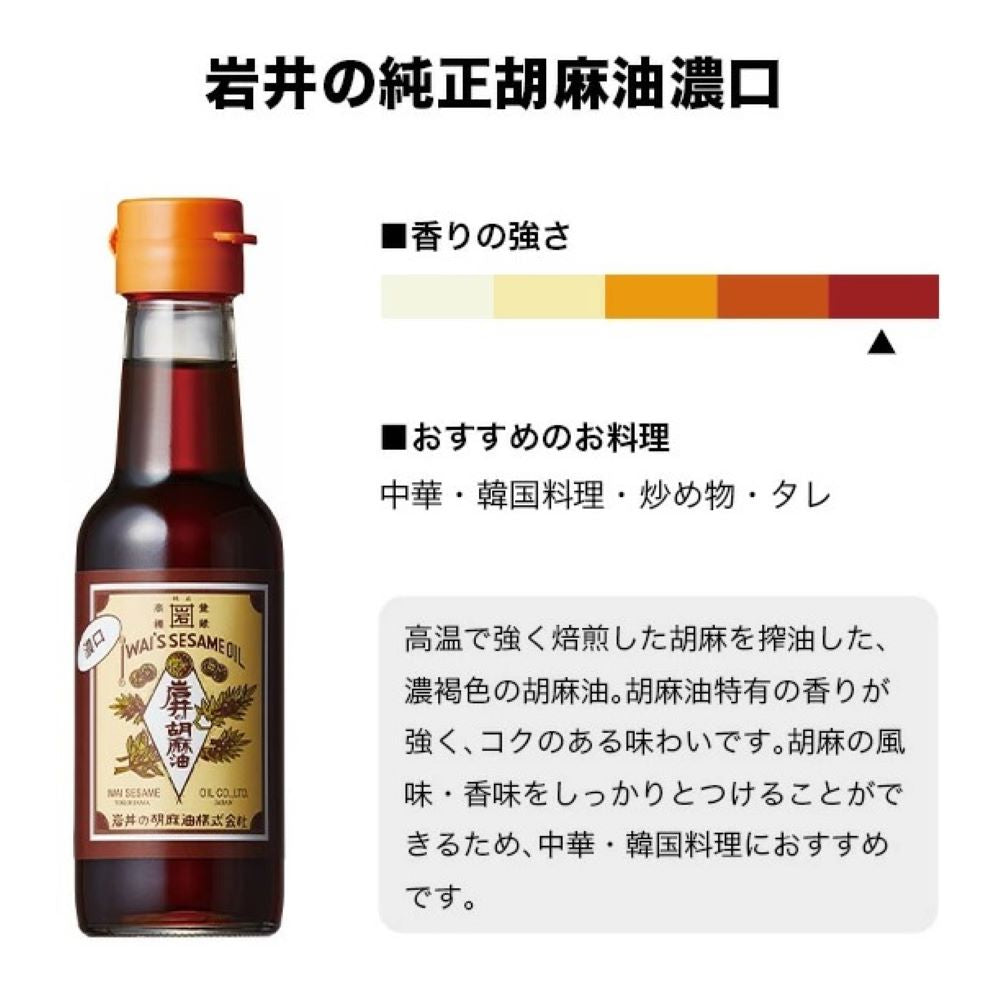 | 評論 | ■賞味期限:パッケージに記載(開封後はなるべく早くご使用ください。 ■保存方法:直射日光を避け、常温の暗いところに保存してください。 ■製造者:岩井の胡麻油株式会社 本社工場 横浜市神奈川区橋本町2丁目1番26号 ※PCモニター環境により画像の色合いが若干異なる場合がございます。ご了承ください。 |