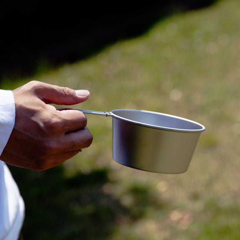 野營用的金屬餐具是用日本金屬紡紗的傳統方法一件一件製作的。