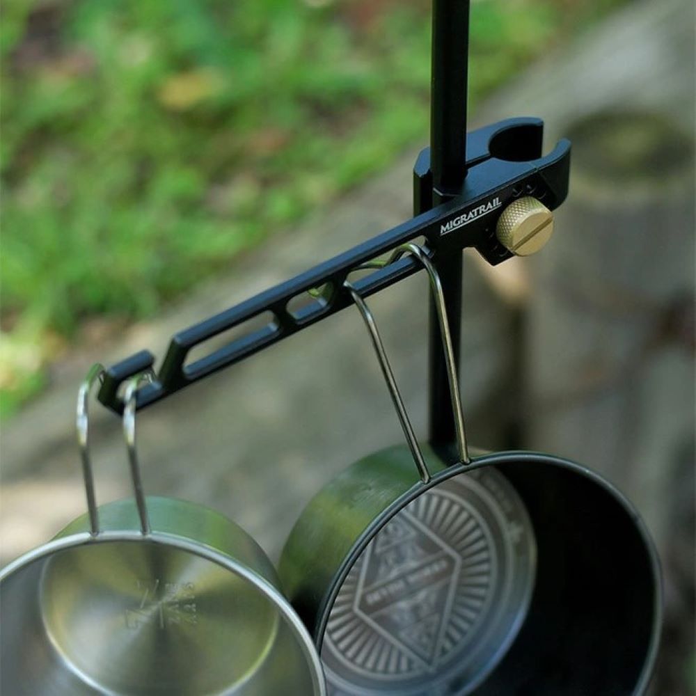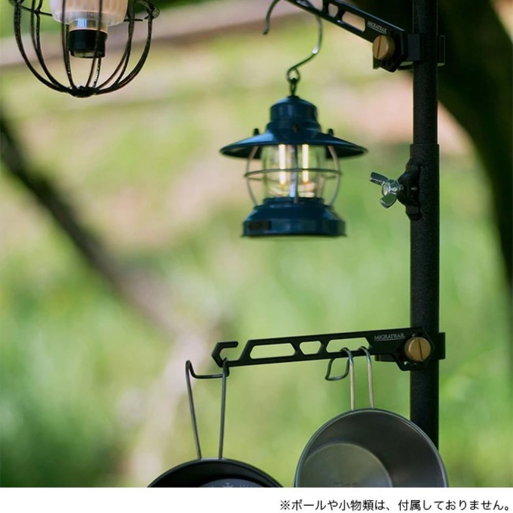ランタンやシェラカップ等を、様々な場所に掛けることを可能にするマルチハンガー。