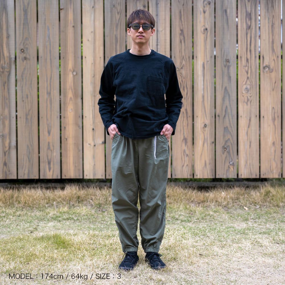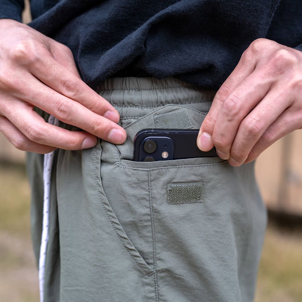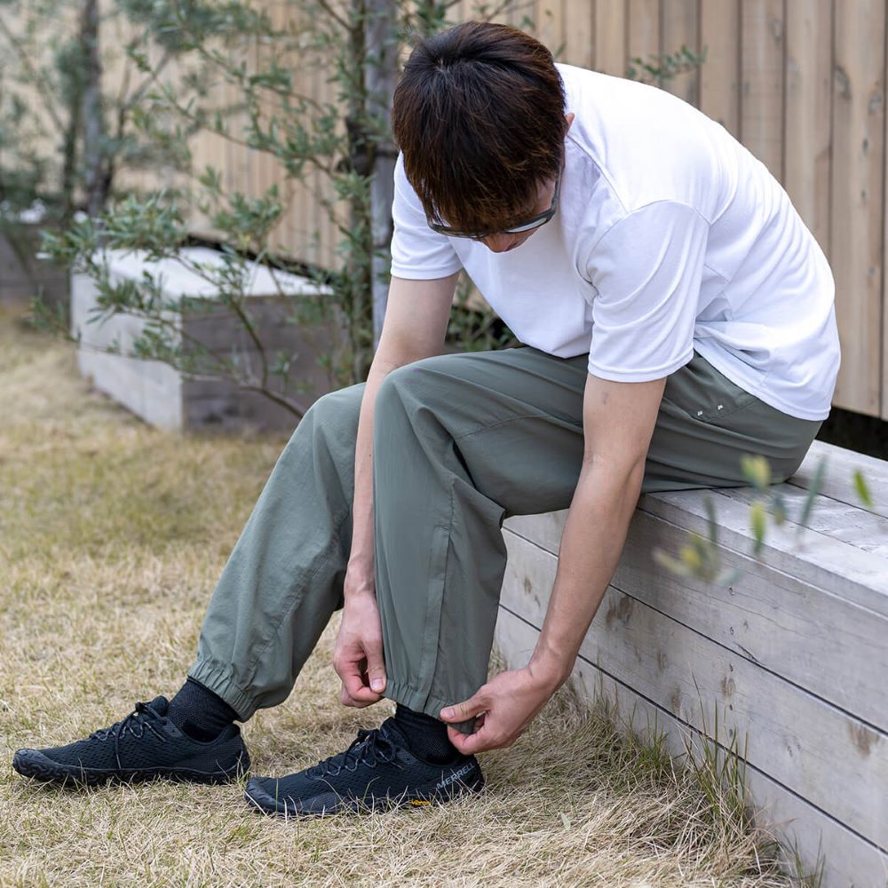 迷迭香(マンネンロウ・ローズマリーの和名)の名のごとく、元々はガーデニングや畑仕事で着用することを想定して作られたパンツです。ただ、全体的に少し緩いシルエットといい、ガシガシ履いて洗濯しても大丈夫な耐久性といい、普段着にも登山着にもピッタリ。一年を通して快適に使い倒せる最強のナイロンイージーパンツです。