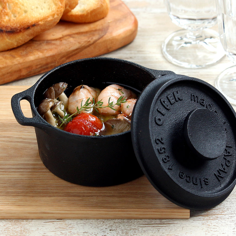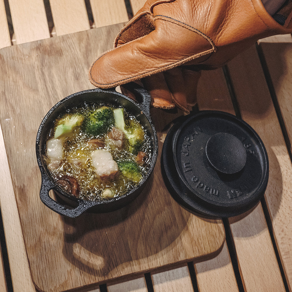 與單份食物相得益彰的砂鍋。 Nambu Ironware 的鑄鐵,體積小但重量輕。