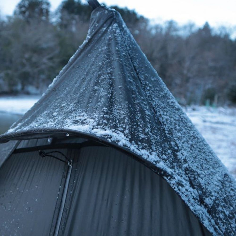 また、オプションのカーボンポールエクステンダーを使用することで、シェルター中央にポールを2本、ポールをなくしたA字型のフレームを作ることもできます。