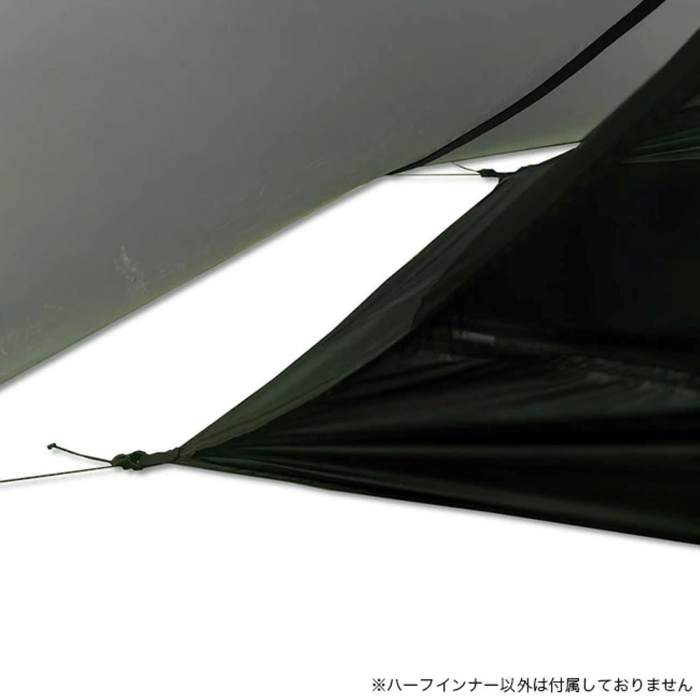 入り口の反対側にはフライに繋げるトグルがあり、ガイロープでフライを外側に張ることでインナーを拡張できます。
