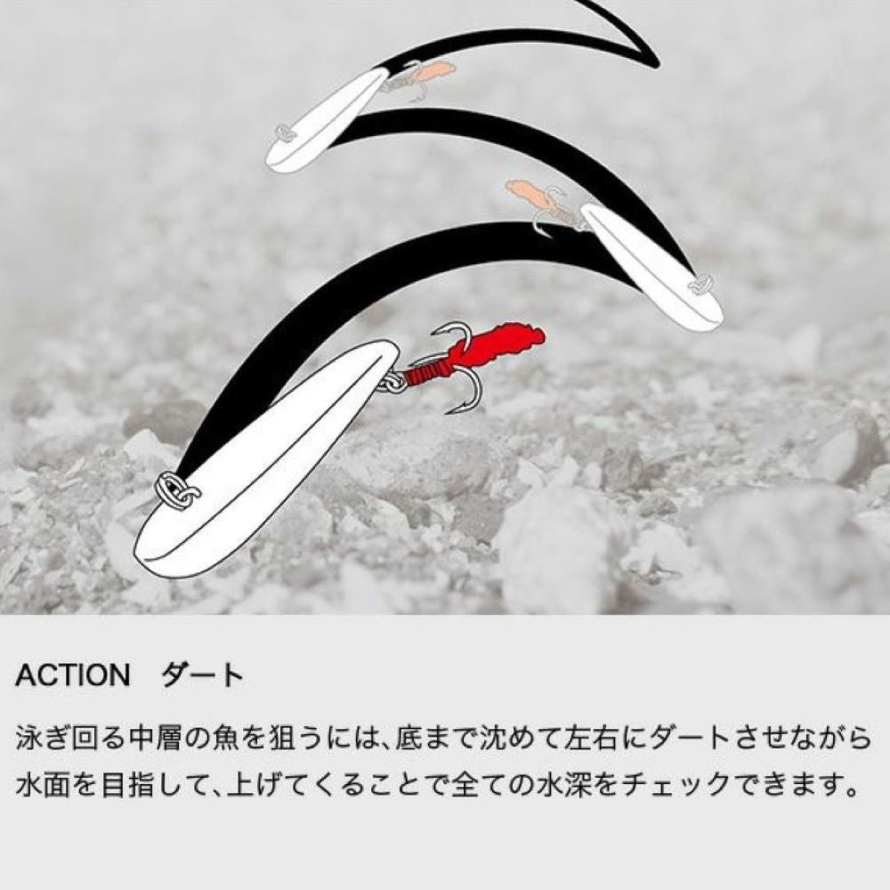 ダート/ただ巻き/ズル引き/ステイ この4つの異なるアクションを自在に操ることで好奇心旺盛な魚を魅了し、川・湖・海とフィールドを選ばず浅瀬や深場の水深の違いにも対応可能なLureです。