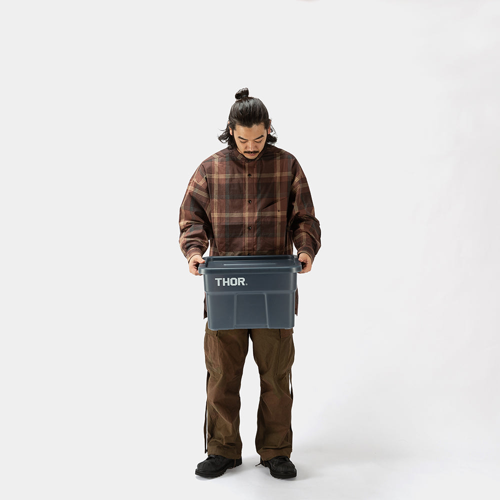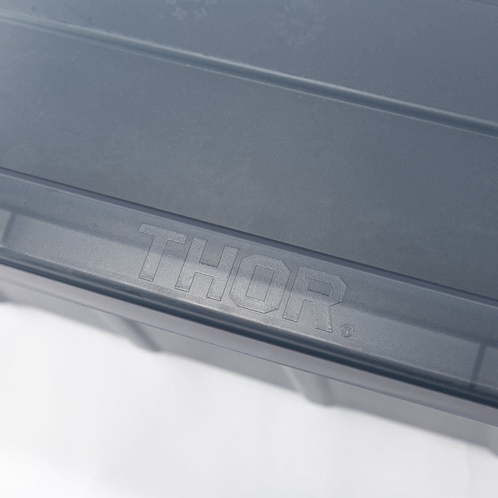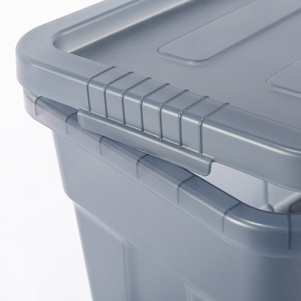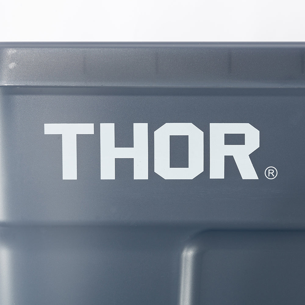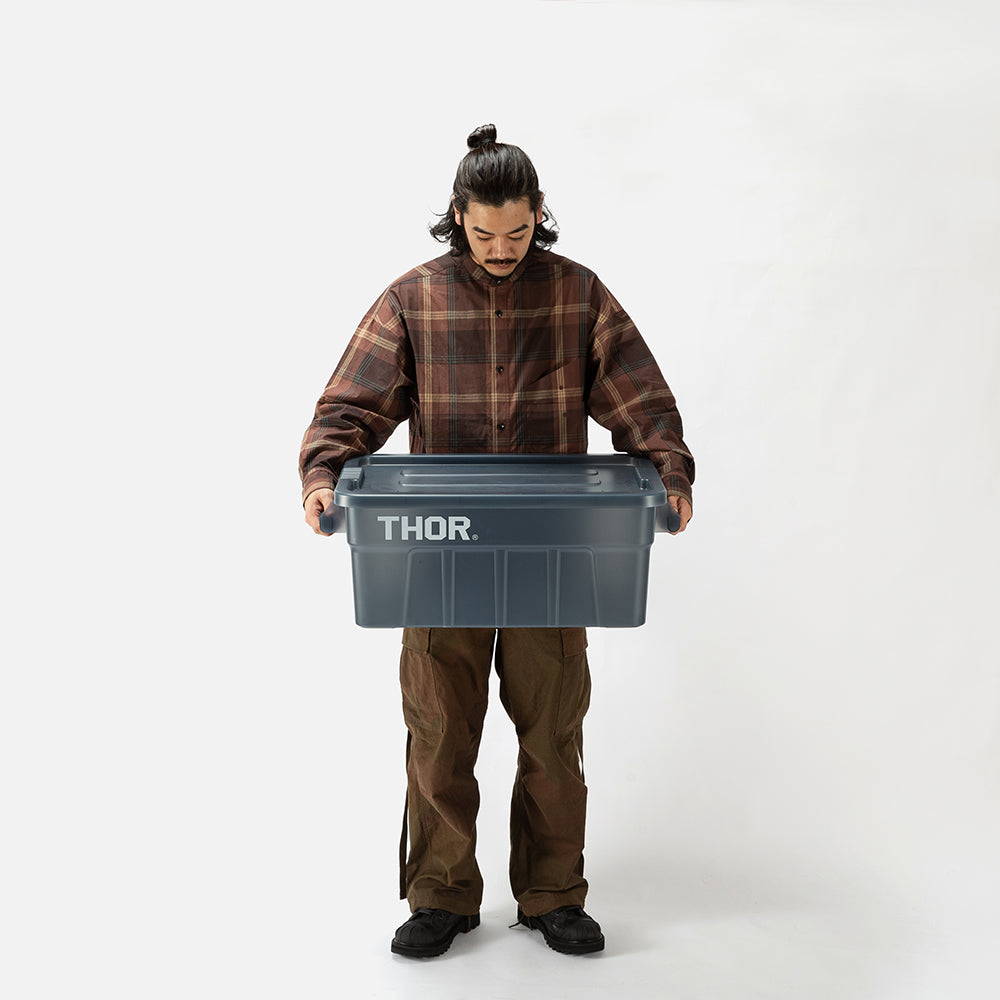 業務用メーカー「TRUST/トラスト」社の高い耐性を誇る屋内野外で使用可能なハンドル付きトートボックス/コンテナ「Thor Large Totes With Lid /ソーラージトートウィズリッド」の23L、53LサイズをSUNDAY MOUNTAINが優しい雰囲気のブルーグレーをクリアにして、よりライトなイメージに、オリジナルカラーで別注。