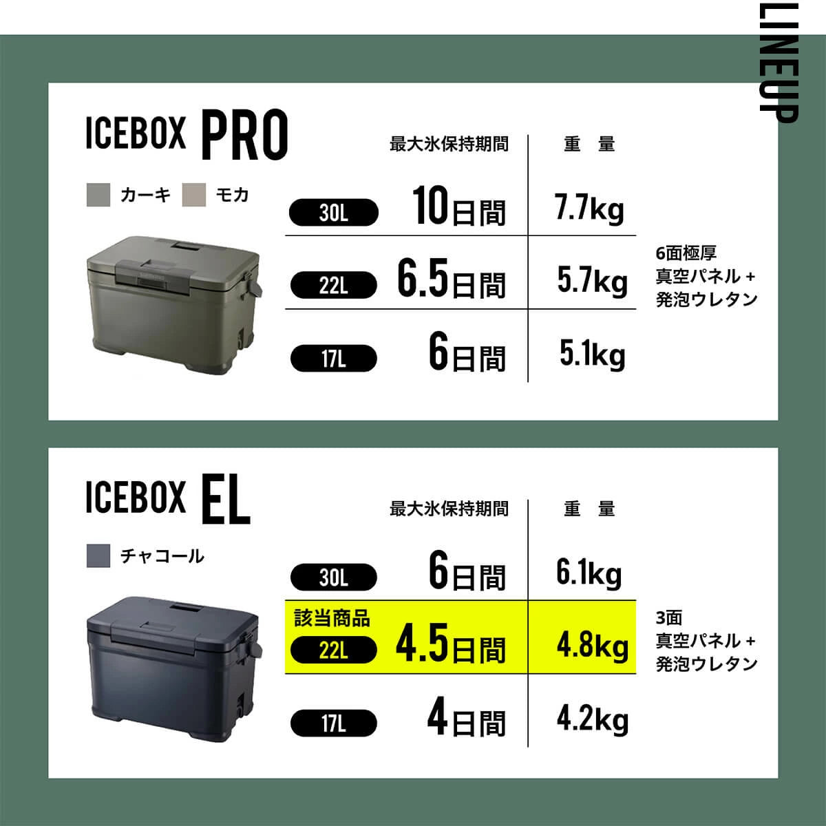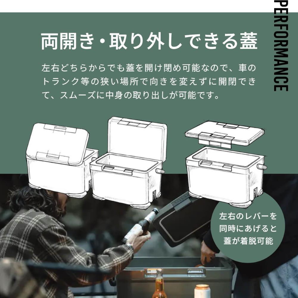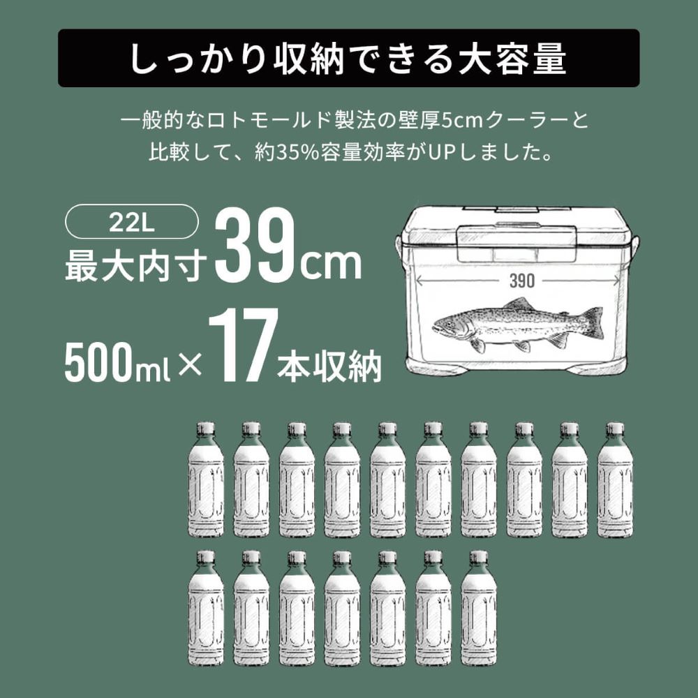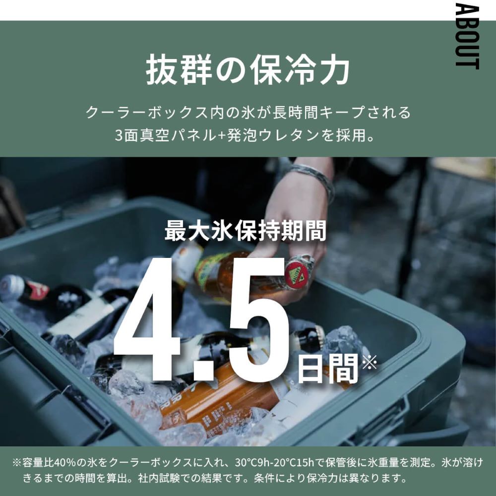 クーラーボックス内の氷がキープされる発泡ウレタンを採用しており、抜群の保冷力です。