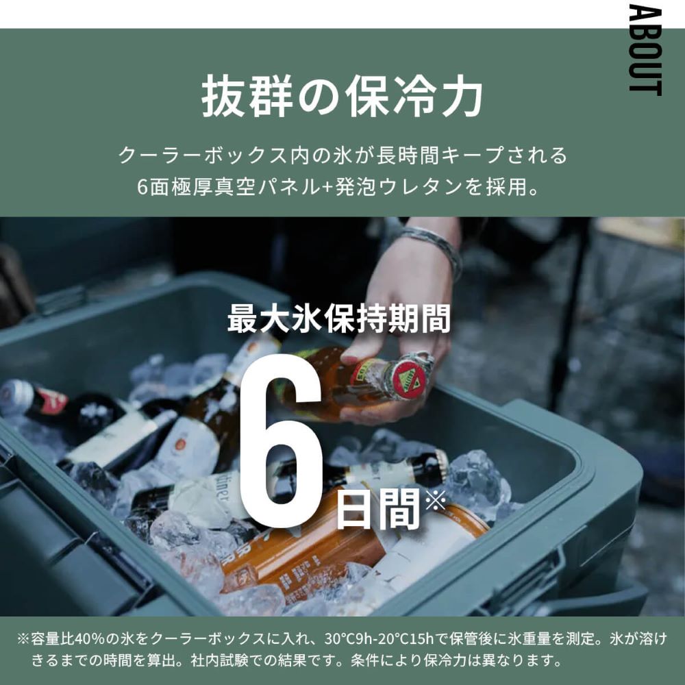 クーラーボックス内の氷がキープされる発泡ウレタンを採用しており、抜群の保冷力です。