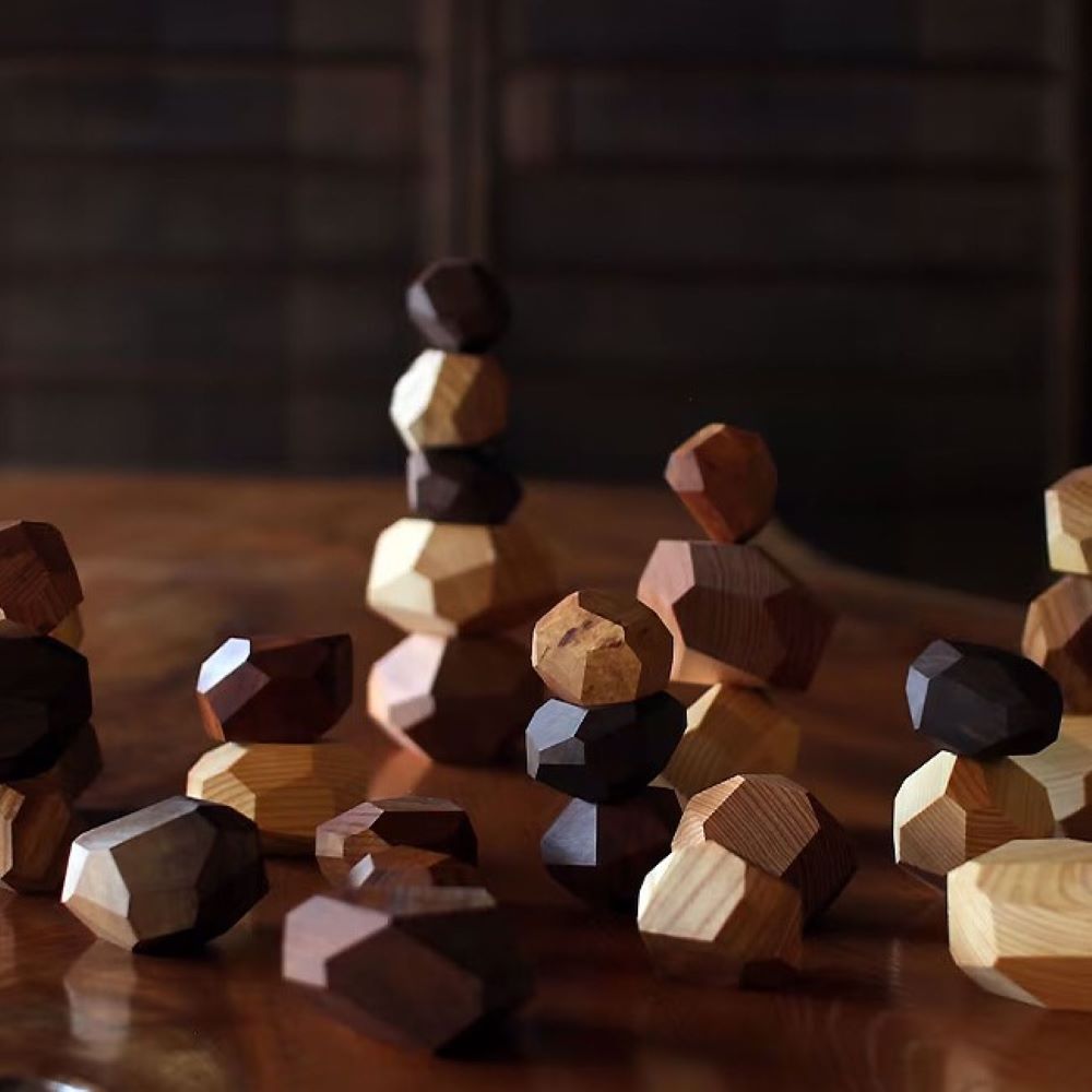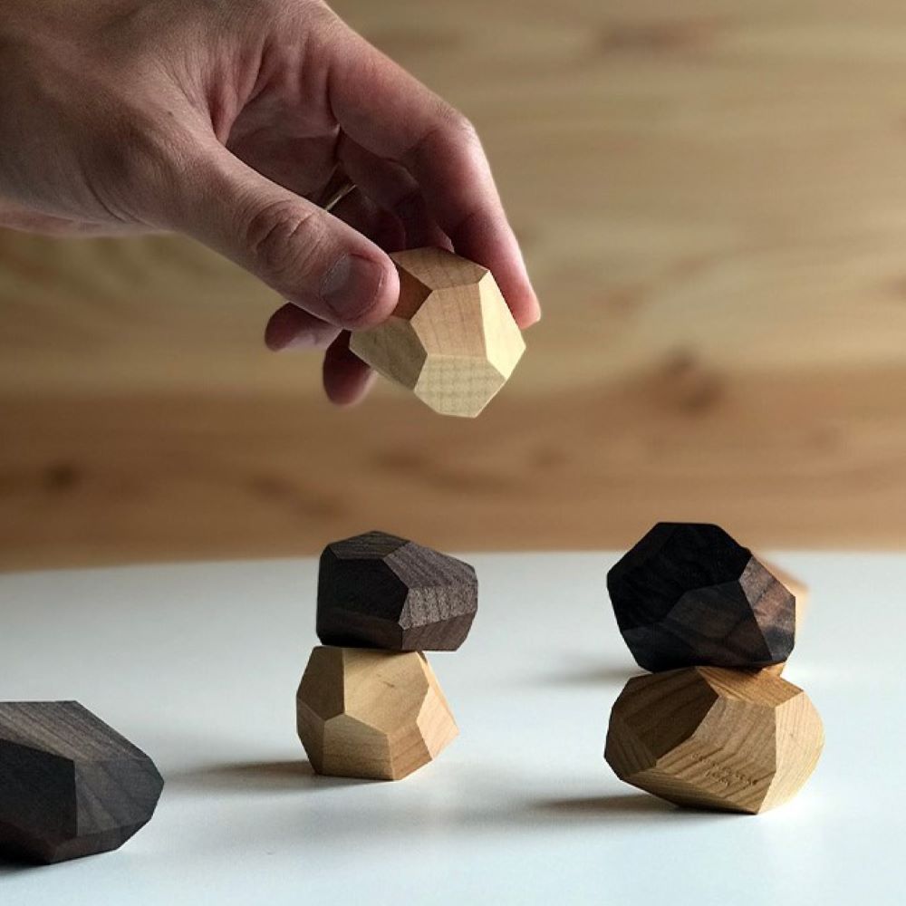 バランスと創造的感覚を養うための多面体の木製のブロックです。