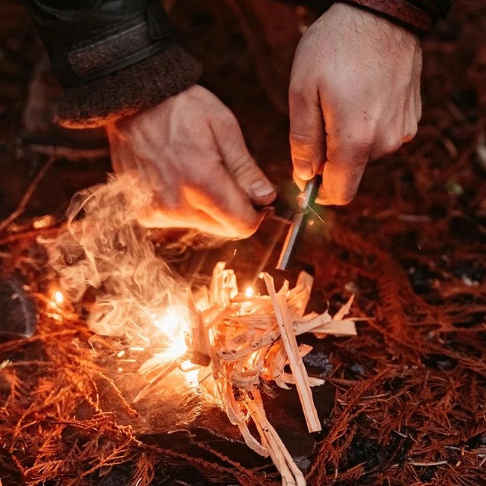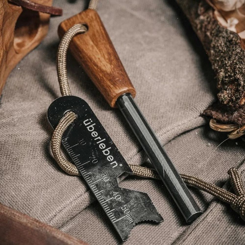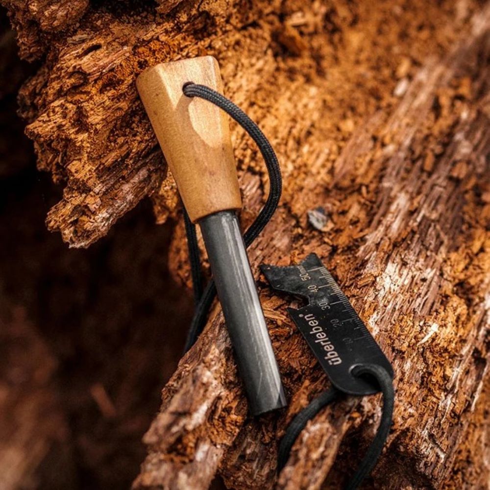 自然な質感で握りやすい木製ハンドル付きのファイヤーロッド、6機能マルチツールスクレーパー、ミルスペック550パラコードストラップが付属しています。