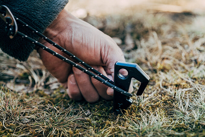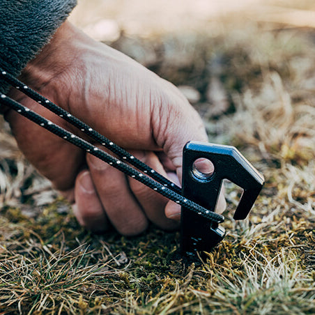 クサビ型で、刺せば刺すほど地面に密着する構造ですが、フラットデザインなので、少しひねるだけで隙間が大きく生まれスッと引き抜ける、固定力と抜き易さを両立したペグです。
