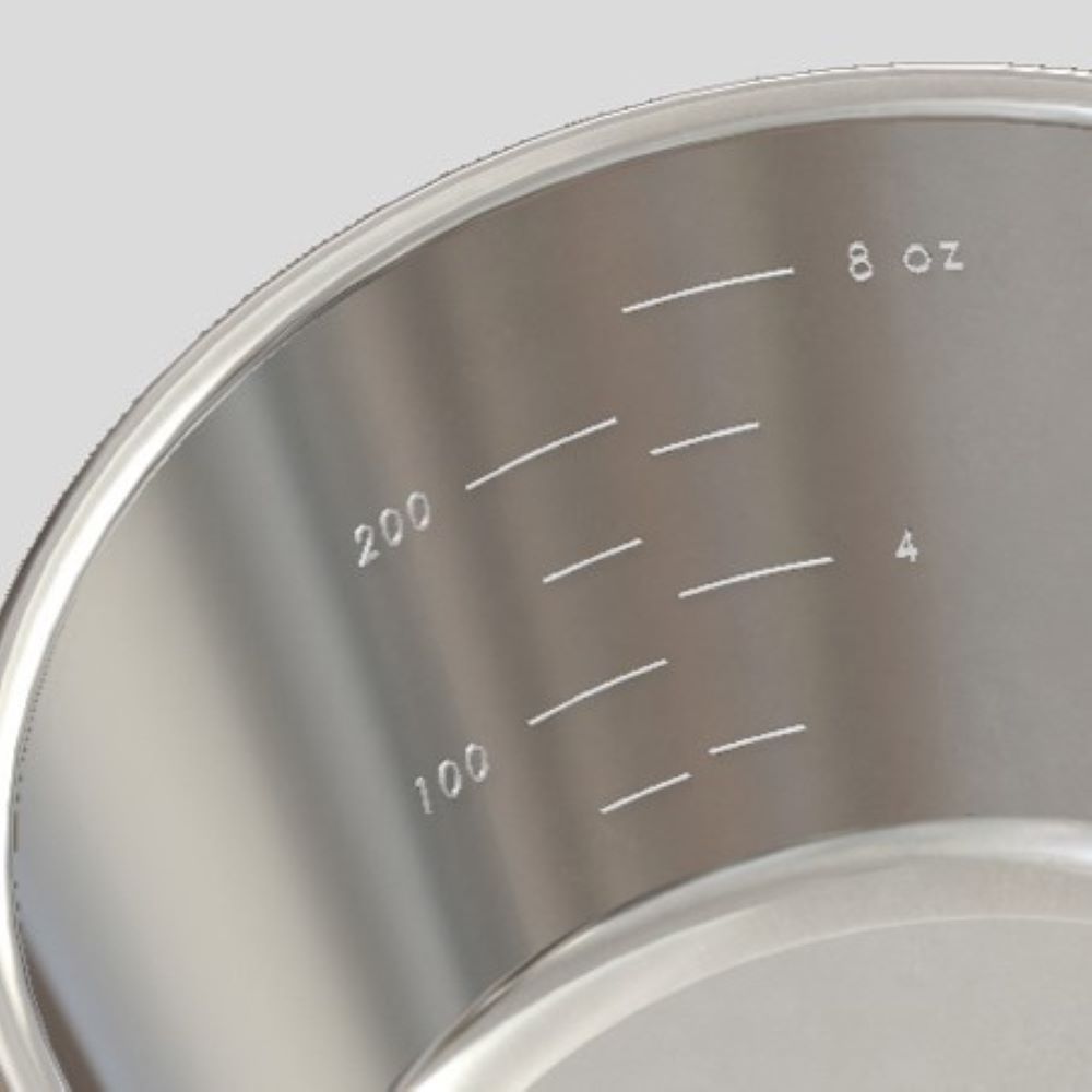 ステンレス素材を選択しているシェラカップですので、チタン製と違い、頑健で長持ちさせる使命があります。採用した板厚は0.6mm。これ以下の板厚ですと凹みやすくなります。