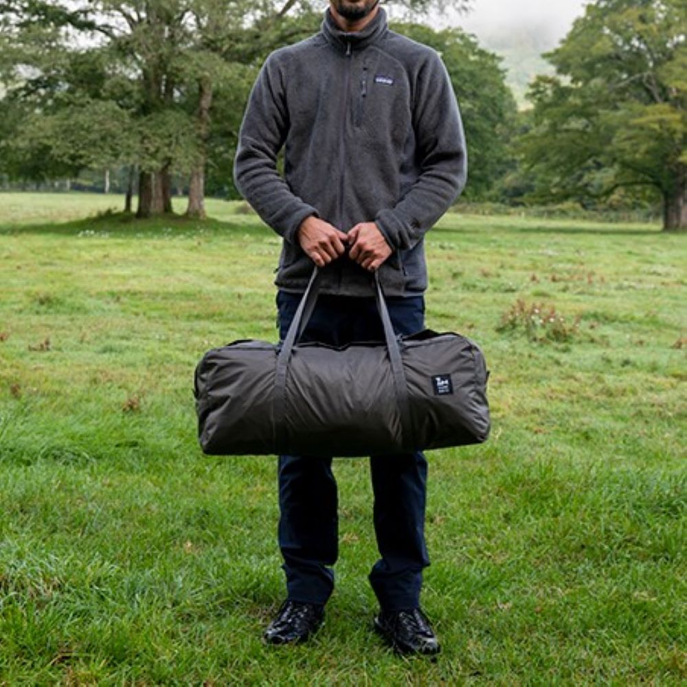 ファブリックにはポリエステルリップストップを採用。表面にシリコーン、裏面にポリウレタン(PU)を加工する事で、高いレベルの引裂強度と防水性能を実現しました。