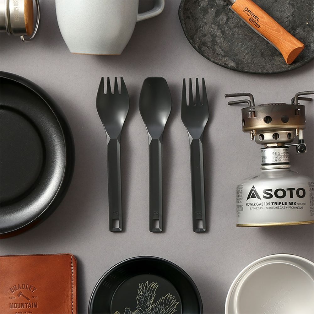刺す、すくうなど、求められる全ての機能を徹底追求した樹脂カトラリー。金属のお皿が多いアウトドアには、接触音が出ない樹脂カトラリーが最適。